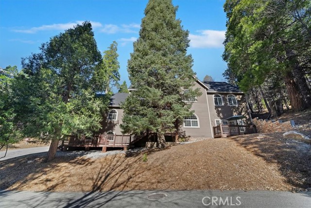 Experience elevated mountain living in this stunning Lake Arrowhead retreat, complete with coveted lake rights and an unbeatable location just a short stroll to Blue Jay Village shopping, dining, and the post office. Built in 2006, this expansive 4,178 SF residence offers 4 bedrooms, 4.5 bathrooms, a versatile den ideal as a 5th bedroom or home office, and a 2 car attached garage, an exceptional blend of space, comfort, and lifestyle in the San Bernardino Mountains. Step inside to discover a thoughtfully designed interior featuring two luxurious primary suites, each with spacious walk-in closets and spa inspired Jacuzzi soaking tubs, perfect for unwinding after a day in the mountains. The gourmet kitchen is both stylish and functional, showcasing a large center island, double oven, wine cooler, abundant cabinetry, and a walk-in pantry, ideal for entertaining and everyday living alike. Composite laminate flooring flows throughout the home, complemented by ceiling fans in every room for year round comfort. Dual zone air conditioning for both upstairs and downstairs levels adds a rare and valuable touch of modern convenience at this elevation. Designed with both comfort and peace of mind in mind, the home includes a full whole home generator, perfect for mountain weather, along w