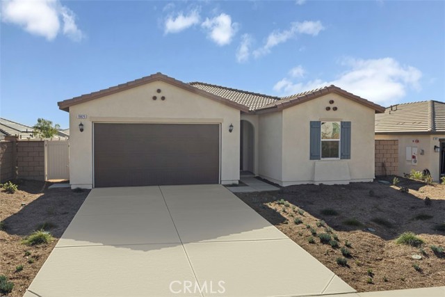 Beautiful and efficient 1470 sq/ft single-story floor plan in the popular Orangecrest neighborhood of Riverside. All Argento @ Citrine homes offer soaring 9-ft ceilings and large windows to let in the natural light. This home is enhanced with a North-facing location and long private driveway. This floor plan boasts a large kitchen/great room combo that gives you plenty of room for entertainment and family fun. This home also includes luxury vinyl plank flooring in most areas, and upgraded carpet in bedrooms and closets. The stylish kitchen features an island, an abundance of Shaker-styled cabinets, quartz countertops, and Whirlpool® stainless steel electric range, microwave, and dishwasher, under mounted sink with Moen faucet, and pantry. The great room opens to the nice sized back and side yards for privacy with for family gathering and outdoor activities. There 3 generously sized bedrooms and there are 2 full bathrooms. The primary bathroom offers large shower, linen closet, dual sink vanity, in addition to the large walk-in closet. This home sits on an estimated 5,320 sq/ft lot with driveway and two-car garage. The two community parks offer outdoor family fun with playground equipment, dog parks, and open spaces! Great schools are nearby as well! Photo is rendering of mo