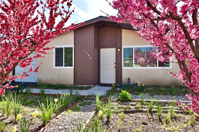 Gardeners delight with flowers galore! Well maintained two bedroom/one bath single level home. Bright light and airy throughout. Galley style kitchen and breakfast counter offer space to gather and prepare your favorite meals. This lovely home has many new upgrades including the roof, dual pane windows, heating and air conditioning, wood floors, ceiling fan in the dining room, insulation, copper plumbing, dual flush toilet, window blinds, drapes, garage door, fresh paint and more. The refrigerator is included. A one-car garage encompasses the laundry area and additional storage space plus there is driveway and street parking. Escape into a world of tranquility as you explore the beautiful gardens surrounding this home. Spend leisurely hours puttering away and find solace amidst the abundant variety of fruit trees, boasting over twelve different types, along with luscious berries and grapes. For those with a passion for preservation, enjoy dehydrating, freezing, and canning your own bountiful harvest. Don't miss the opportunity to make this delightful gardener's paradise your own. Sierra Bonita Village is a 55+ community close to Turtle Creek Park, Senior Center, Vet’s Hall, walking trails, dog park, golf course, pickle ball and more. Public transpor