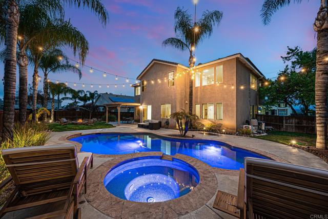 Located at the end of a peaceful cul-de-sac in the Temecula School District, this stunning 5-bedroom, 3-bathroom home boasts a spacious 3,217 sq ft open floor plan with high ceilings and abundant natural light. The chef's kitchen features stone counters, a center island with bar seating, and ample storage. The tropical backyard is an entertainer's dream, offering a Pebble Tec saltwater pool with spa, Wi-Fi automation, fire pit, and lush palm trees. Additional amenities include a 3-car garage, large driveway with RV parking, and solar panels for energy efficiency. Situated near award-winning Temecula wineries, this home may come fully furnished for added convenience.