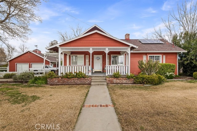 Charming farmhouse in desirable neighborhood in north Willows. This .98 acre property has a 3 bedroom, 3 bath home with covered front porch, large eat-in kitchen, living room plus an additional family room and a large mud room/laundry. There is a wood fireplace in the living room and a wood stove in the family room. Home has central heat and air, with a mini-split unit in the family room and also a whole house fan. A lovely patio area with a water feature is accessible from both the family room and the master bedroom. This patio area is plumbed and wired for a hot tub. A short distance from the house lies a 20' x 30' studio, currently used as an art studio/semi-darkroom. This studio could work nicely for a game room, or with a little upgrading, a mother-in-law unit. The detached 2-car garage is approx. 30'x30' and provides plenty of space for parking or hobbies, and a sliding barn door on the west side for ease in getting yard equipment in and out. The balance of the property has lawn, fruit/nut trees, and a garden area. Solar is owned outright (no loans!)