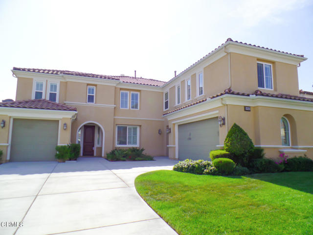 Behind the gates, you will find this gorgeous Executive 4-bedroom 3.5-bath home located in the prestigious Moorpark Highlands gated community situated on a cul-de-sac. Upon entering the home, you are greeted by a sprawling floor plan, accented by high ceilings, and an abundance of windows that invite the natural light. The impressive living room seamlessly transitions into the family area, kitchen, and formal dining room plus a full bedroom and bath suite downstairs. The gourmet kitchen is appointed with custom cabinets, a large island, granite counters, stainless appliances, and a pantry. Retreat to the main suite with a master bath highlighted by a rejuvenating Jacuzzi tub and 2 separate vanities. Enjoy entertaining friends in the lovely backyard. The home offers a 3-car attached garage (2+1) and a large laundry room.