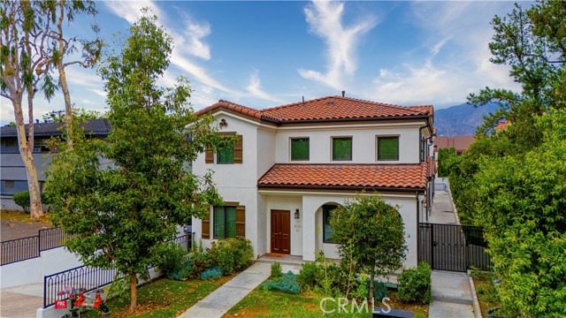 Introducing a beautifully designed modern Spanish-style townhouse in the heart of Arcadia, located within one of the most sought-after communities and award-winning school districts. This thoughtfully crafted residence offers 4 bedrooms and 3 bathrooms, with a spacious and functional layout across two levels. The open-concept living area is bright and inviting, featuring high ceilings, recessed lighting, and durable SPC flooring that is both water- and scratch-resistant. Custom-designed stair railings add a refined architectural touch. The gourmet kitchen showcases sleek European-style cabinetry, a waterfall peninsula, and premium Café appliances, including a versatile microwave with air fry and baking functions—perfect for everyday living and entertaining. The primary suite is designed for comfort and relaxation, featuring a well-appointed closet and a spa-inspired bathroom with a freestanding soaking tub, rainfall shower, dual vanities, and LED-lit mirrors. Additional highlights include an in-unit laundry room, designer lighting fixtures, and smart home features such as a Nest thermostat for enhanced comfort and efficiency. The exterior features smooth stucco finishes and a classic tile roof, blending modern elegance with timeless appeal. A gated garage provides added secu