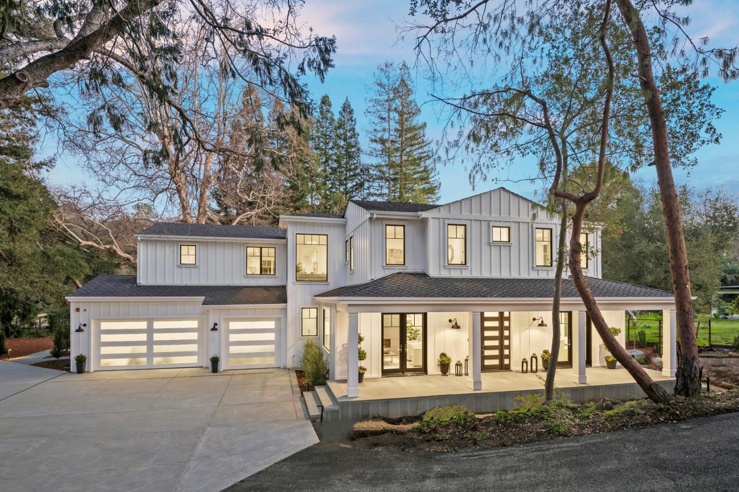 Fabulous New Construction in Saratoga Schools. Napa style Farmhouse with a contemporary flair. Builder Steve Scates has produced another high quality, beautifully designed home w/ exceptional finishes. Set upon a tranquil and picturesque environment that is sunny and bright accented by a stunning Redwood Grove. This 5 bedroom, 5 ½ bath, 4,560 sf +/- masterpiece boast formal dining and living rooms, spacious butlers pantry, fabulous great room kitchen with high ceilings and a downstairs bedroom suite. The upstairs primary suite and 3 additional bedrooms are all en-suite. Outdoor living w/ spacious Connecticut Blue Stone patio with garden and play areas. 3 car garage. Features incl: Home automation (audio-visual-security and system management), Cleaf cabinetry, NeoLith counters, Blue glass enclosures, Emtek hardware, Fry Reglet trim profile throughout, Viking Pro 7 Series appliances, Hansgrohe, Brizo, Toto, Kohler and Graff plumbing fixtures and more!