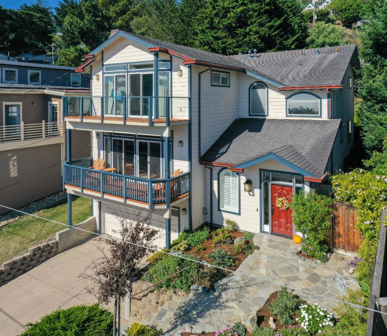 Stunning 4 bed 2.5 bath 2,820+/-sqft home. Formal dining room opens to spacious living room w/fireplace & spectacular ocean & harbor views from both areas. Sliding doors open to front deck bringing outdoors in. Kitchen w/granite counters, storage, center island, & breakfast bar. The kitchen opens to the family room with French doors to the backyard with a patio to entertain and space to garden. This level has 1/2 bath and laundry room. A large landing leads you to upstairs rooms. The primary bedroom has spectacular views, a gas-burning fireplace, an updated ensuite with soaking tub, separate shower & walk-in closet. Sliding doors to the deck to enjoy the ocean view, start your day with a morning cup of coffee or end your day relaxing & watching the sunset. Down the hall, you will find a full bathroom & 3 more bedrooms. 2-car garage with plenty of storage, a beautifully landscaped yard & easy access to beaches, the harbor, restaurants, trails, & shopping. Come live your coastal dream!