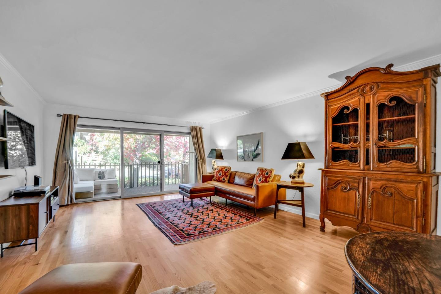 Rarely available end unit with no age restrictions in Sharon Heights! Beautifully appointed and spacious 800sqft, 1 bed 1 bath . Many custom features including, bamboo kitchen cabinetry with matching bartop dining table, new bedroom built in closet system, and made to measure balcony seating with storage. Hardwood floors throughout. In unit washer and dryer. Additional storage unit on site. Pool in complex. Unit easily accessible from covered assigned parking , Quiet location within easy reach of 280 , 84. Walking distance to amenities and minutes to Sandhill Rd and Stanford University!