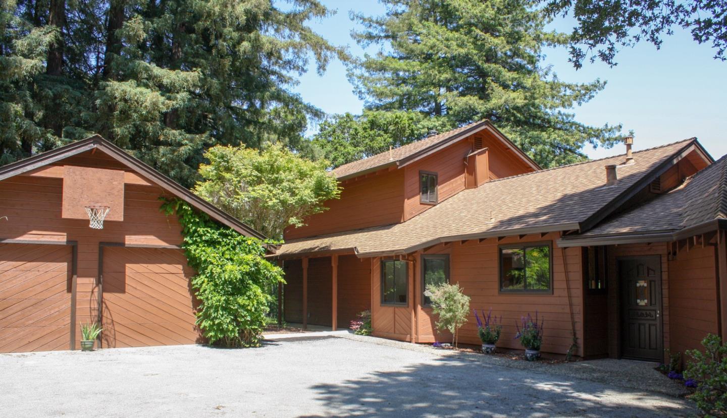 Updated 1,766-square-foot, 3-bedroom, 2-bath home on 4 acres, perfect for easy country living. The open floor plan & large deck are ideal for entertaining, while pleasant vistas & high vaulted ceilings make it spacious & airy. The laminate wood flooring & fresh paint give the home a modern feel, while the quartz countertops & subway tile backsplash add style. The wood-burning stoves in the living room & upstairs primary suite provide warmth, while the backup central heating ensures you'll always be comfortable. The first floor includes the living room, dining room, kitchen, two bedrooms, a full bath, & an indoor patio/atrium. Upstairs is the spacious primary suite w/ a superb forested mountain view. Oversized detached garage, & wood sheds provide plenty of storage, & the deer-proof garden space & fruit trees enhance the open space feel of the property. With ample acreage, there's potential room for an ADU, artist studio, or more. ~10 minutes from Starbucks in revitalized Aptos Village!