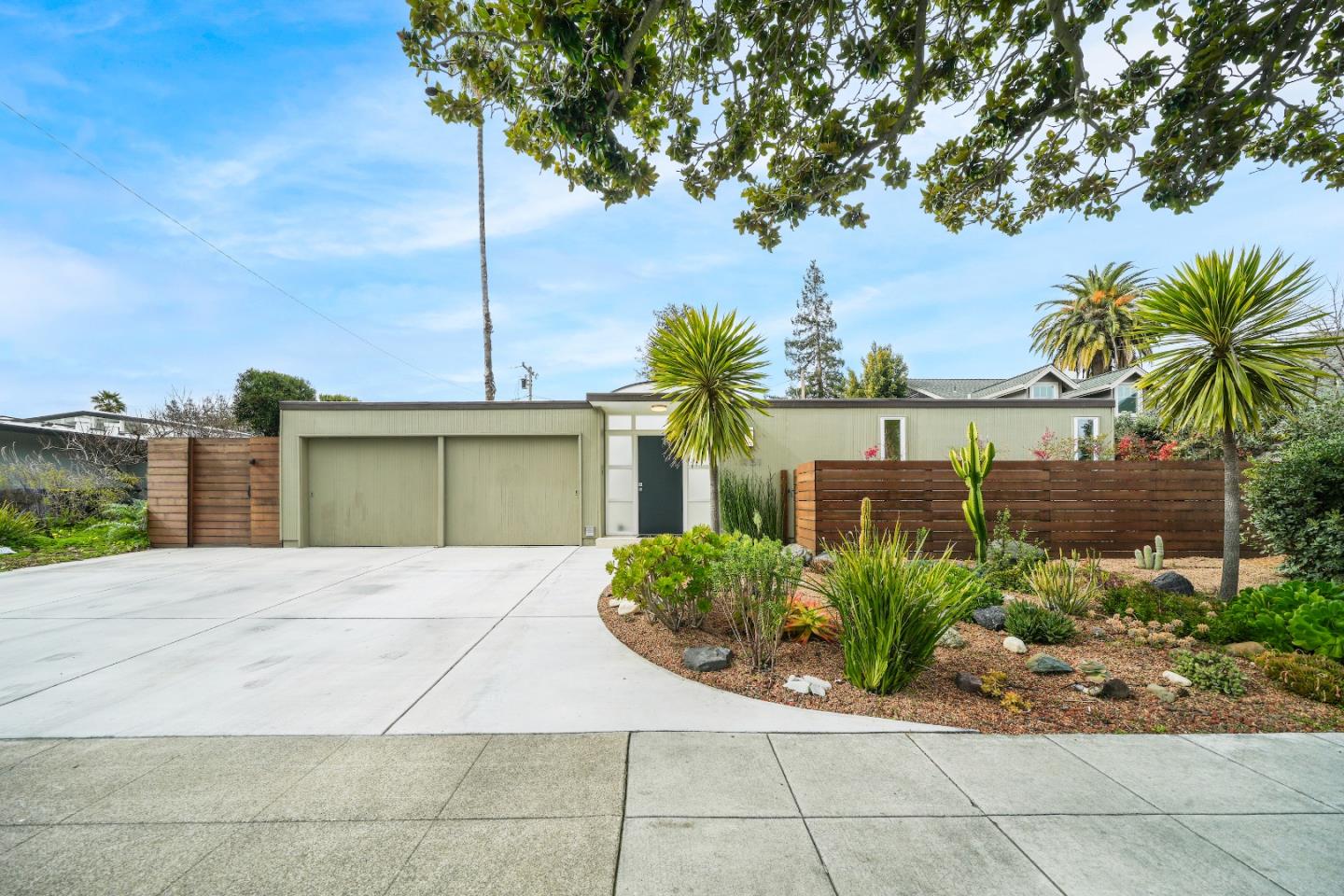 Remodeled Eichler home in prime Fairbrae location with a serene and sophisticated feel. Features include a mature magnolia, modern fencing, and drought-tolerant succulents. Dramatic foyer with custom skylights leads to a stunning living room with built-in media hutch and floor-to-ceiling glass. Gourmet kitchen with custom cabinetry and granite countertops opens to a dining room with floor-to-ceiling glass. Zen-like master suite with walk-in closet and slider to yard. Remodeled bathrooms with Porcelanosa tile and modern vanities. Other amenities include dual pane glass, radiant heat, exposed wood beams, and skylights. Finished two-car garage with epoxy floor. Private & serene backyard microfarm with arbor covered patio, fire pit area, lawn, raised bed gardening & variety of plants & shrubs. Steps to Fairbrae swim and racquet. Conveniently located near shopping and parks. EZ access to Google, Linkedin, Apple, 85, 237, 280, and El Camino. Top Schools: Cherry Chase, Sunnyvale, Homestead.
