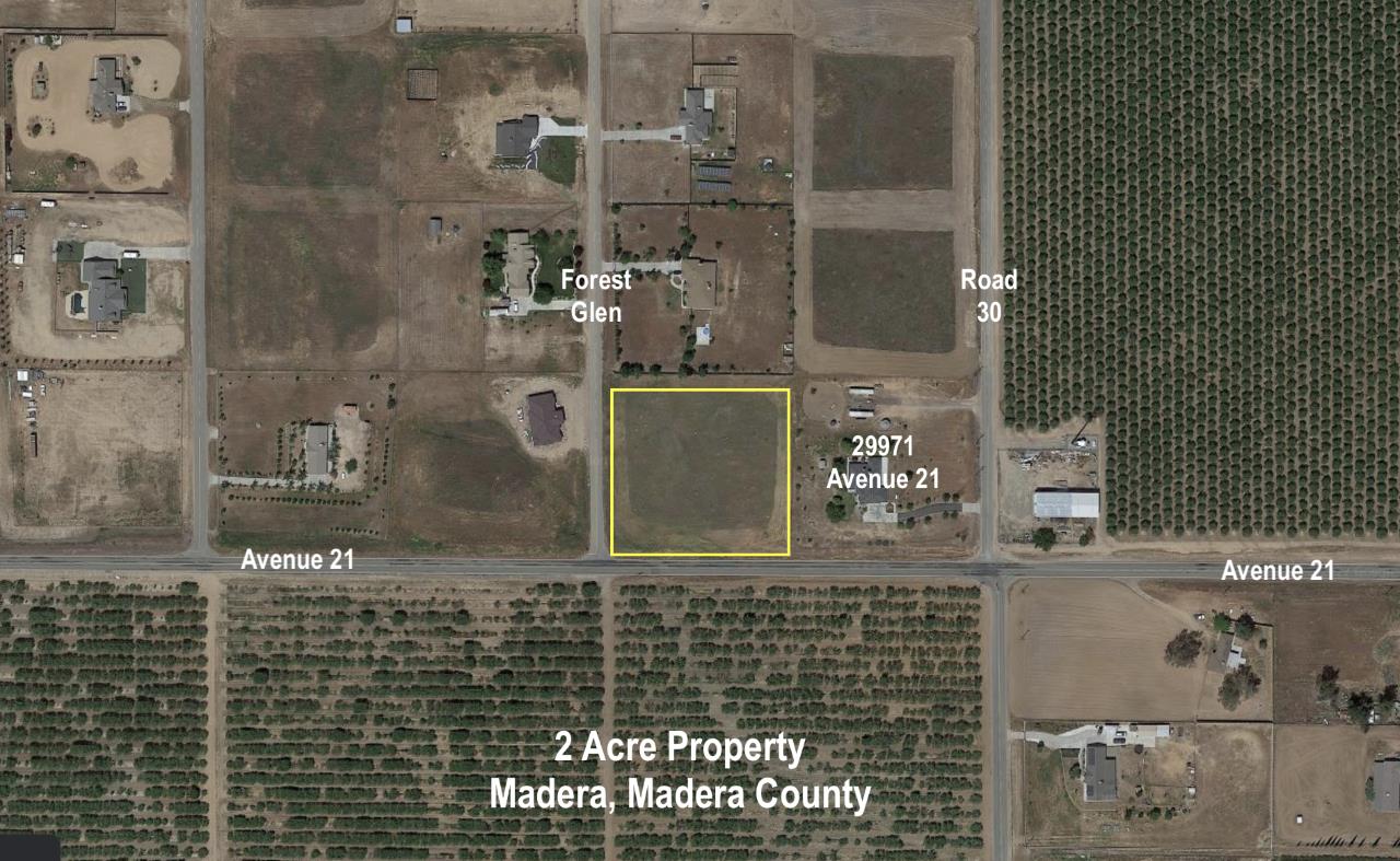 Expansive 2 acre property ready for you to build your single family home AND your detached ADU. There are homes on 3 sides of this property, so power is next door. This home will need to be built with well water and septic tank. Fifteen minutes to shopping, restaurants and gas. This property cannot be subdivided according to conversation with the county. Prospect buyers should confirm the building process with Madera County.