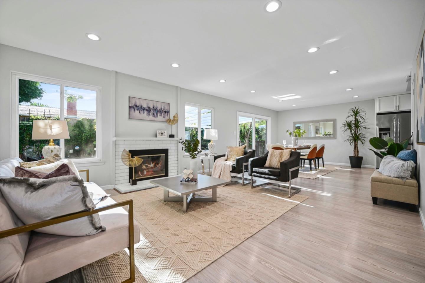 Excellent opportunity in the desirable Westgate Neighborhood. Single story home with an open floor plan consisting of 4 bedrooms & 2 bathrooms. Laminate floors and recessed lights throughout the main living areas. The spacious & open living/ dining room combination features two large windows, wood-burning fireplace outlined in brick, dining area & a sliding glass door to the private rear yard. Upgraded Kitchen w/ white cabinetry, modern deep sink w/ window above and breakfast nook. Master bedroom is a suite with stall shower, white closet space for storage. Attached 2-car garage was converted to bonus room w/ skylight, door to the side yard and separate inside laundry area; Extra storage area can be accessed by manually opening the garage door. Landscaped & fenced rear yard w/ mature trees, covered concrete patio & lawn. This is a lovely tree lined neighborhood close to New Apple Campus and freeways. Minutes to parks, malls, restaurants, grocery stores and schools (Baker, Harker) !