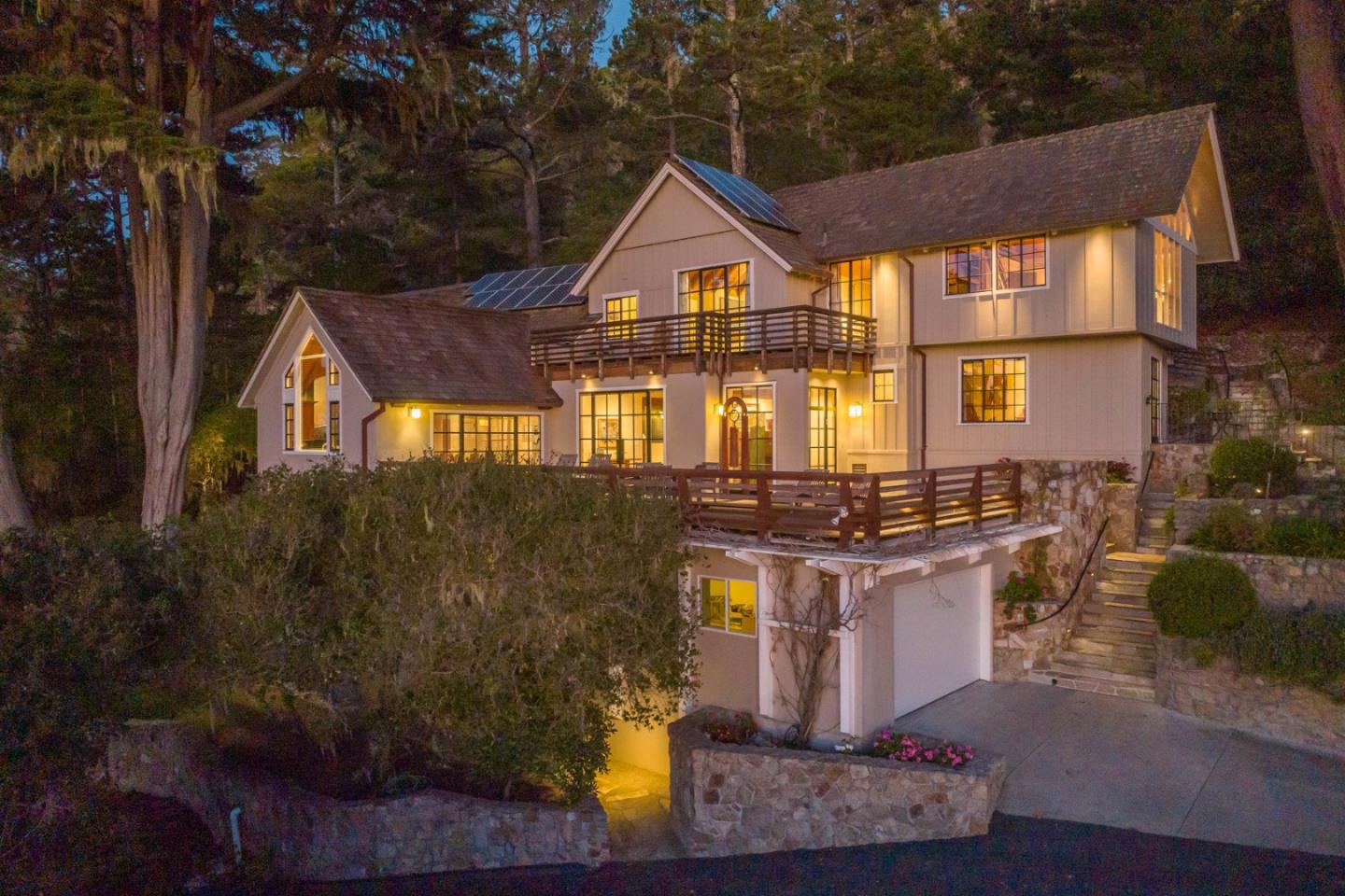 Quintessentially Carmel in style, this inspirational Highlands home sits high atop Crest Road nestled into the trees with vast views of Pt Lobos and the Pacific. Originally the home of early California artist Paul Dougherty, this home is the perfect blend of original charm and artistry tastefully modernized. Huge windows and tall ceilings with chunky redwood beams create a feeling open space. Massive original rock fireplace in great room. Off a dead end street and up a long driveway, the house offers a feeling of complete privacy. This house is one of a kind; an absolute beauty, meticulously maintained and beloved for years by its owners. Den/study could be 5th bedroom.