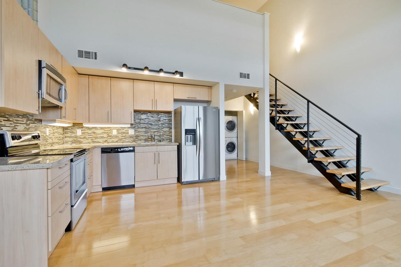 Loft bedroom ensuite unit with 18' ceilings and brick feature wall in highly desirable Plant 51 complex next to Diridon station and upcoming Google Village. This former Del Monte fruit packing plant converted into luxury condos features secured 24/7 access to large gym with peloton and yoga studio, lounge with billiard table, BBQ grills, fountains, fire pits, dog run, and business center. Parking in a secured garage provides access to EV charging stations. Close access to Highways 880, 280, 87/101. Stroll to Whole Foods, Flood Craft Brewery, SAP Center, San Pedro Market, Rose Garden, and various restaurants and shops along The Alameda.