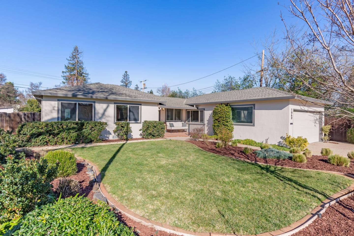 Sitting on a spacious 10,270 square foot lot, this updated ranch-style home offers gorgeous hardwood floors, a fantastic floor plan for entertaining and everyday living, a secluded bedroom wing, and a large, private backyard. The eat-in kitchen stuns with deep white quartz countertops, decorative tile backsplashes, and stainless steel appliances, and opens directly into the living/dining combination making entertaining a breeze. A comfortable family room sits at the front of the home brightened by wide windows. Three well-sized bedrooms enjoy abundant natural light, while the primary suite sits at the end of the bedroom wing with brand new carpet and an updated ensuite bath. Outside, youll find a lovely partially covered patio and a wide pebble stone pathway that leads through mature, drought-tolerant plantings and cacti. A classic home, located in the sought-after Gemello Park neighborhood on the edge of Mountain View and Los Altos, with access to excellent local schools.