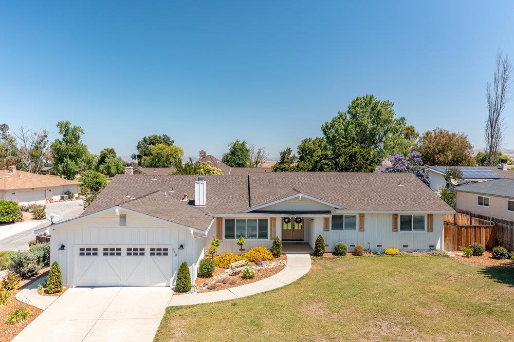 Explore the beautiful 710 Ridgemark Drive in Hollister, CA located in Ridgemark Golf Club and Resort. The one story, farmhouse style home has 4 bedrooms and two and a half bathrooms. The 2,634 sq ft property has an open floor plan with an upgraded kitchen, breakfast bar, eat-in kitchen, dining area, and two living spaces with fireplaces. The kitchen has a large island with built in microwave, quartz slab countertop with new custom cabinetry, matching stainless steel appliances, and engineered hardwood floors. Indoor laundry room, half bathroom, and wet bar have custom cabinetry, new flooring, and lighting. All bathrooms have been remodeled with new fixtures, tile work, vanities, and flooring. Additional upgrades: newer garage door, front doors, backyard French doors, double pane windows, newer high efficiency heating and AC, new sub panel, smart switches, and more. Large 2 car garage has epoxy flooring. The 11,000 sq ft lot has oversized side yards and RV or guest front parking.