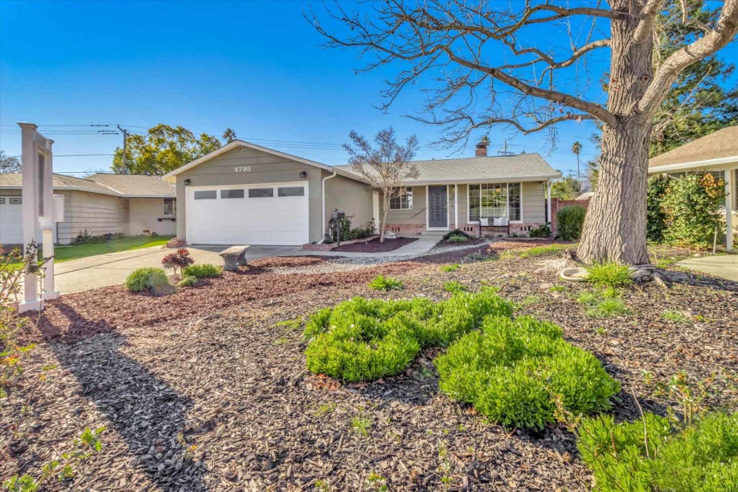 Expanded 1-story home located in highly sought after location in W San Jose by Campbell/Saratoga. Spacious & open floor plan w laminate floors & recessed lighting. Lg picture windows w natural light. Living rm boasts 2-sided fireplace & oversized windows overlooking front yard. Generous kitchen & great room offering ample cherry cabinets, granite counters & stainless-steel appliances, kitchen w large center island. 2 sets of sliding doors in the great room access the expansive rear yard. 3 bedrooms, including the primary suite & hall bathroom located at the west-end of the home. Primary features a sliding glass door that leads out to rear deck. Oversized stall shower has an accent tile surround. Tankless water heater & Solar panels for energy efficiency! Expansive rear yard features a large deck and ample open space. Take advantage of the gardening area, storage shed, and pergola to create your ideal outdoor oasis. A short stroll to Forest Hill Elementary, shopping, and restaurants.