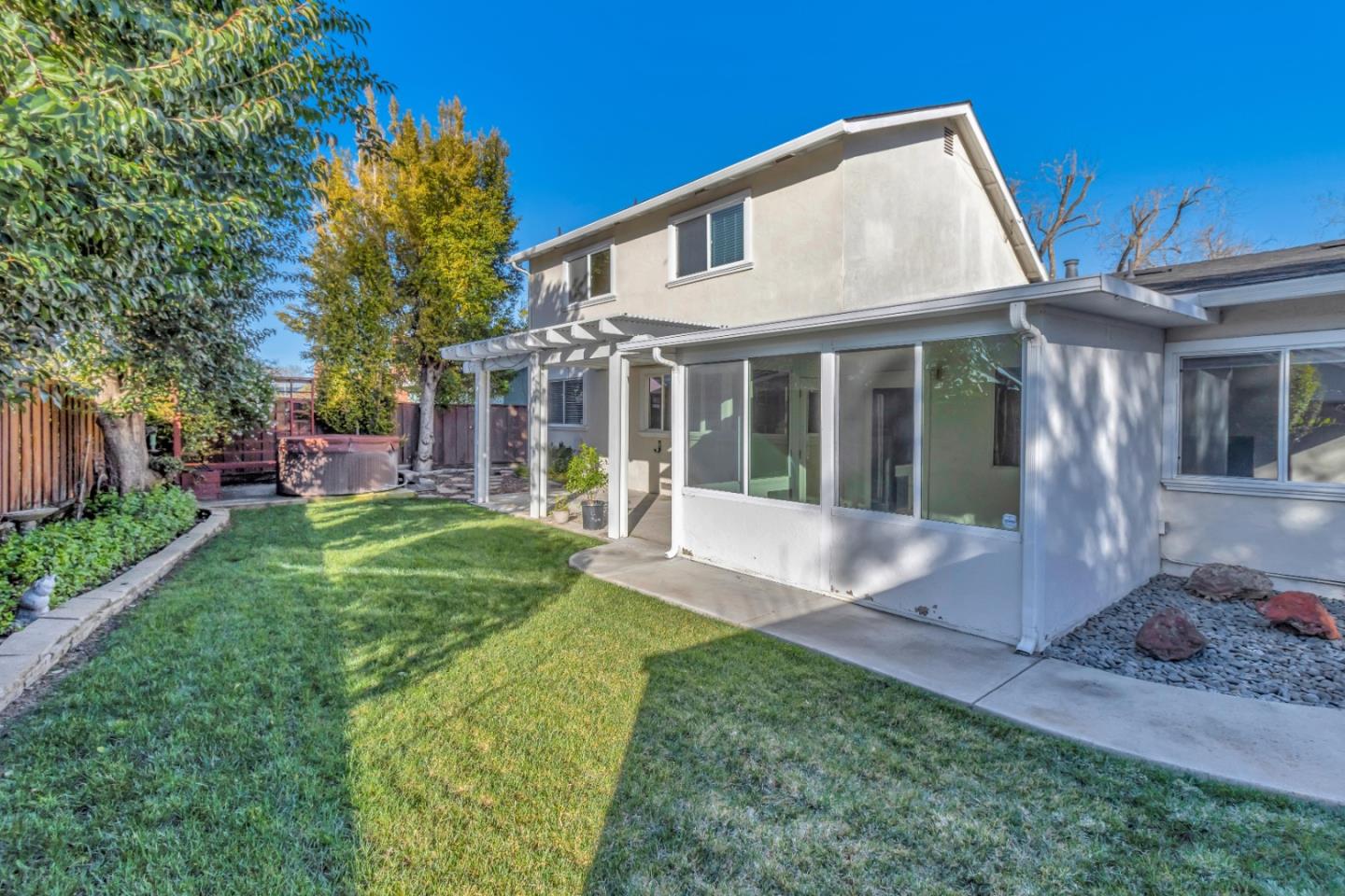 Charming, well maintained single-family home on a beautiful tree-lined street and quiet neighborhood close to major highways 85 and 87. The eat-in kitchen with granite countertops, stainless steel appliances and hardwood floors overlooks the nice landscaping backyard with newer irrigation system. Newer central heater and central AC, garage motor and epoxy. The family room with vaulted ceiling and hardwood floors is conveniently located adjacent to the kitchen. Additional permitted Sunroom off the Family Room is 120 sq. ft. included homes sqft. statement. The entrance into the home has vaulted ceiling living rooms which is very welcoming with its hardwood floors. The master bedroom suite is upstairs with a separate office/bedroom. Home is located in desirable Santa Teresa High school district and close to Oakridge Mall and Kaiser Hospital.