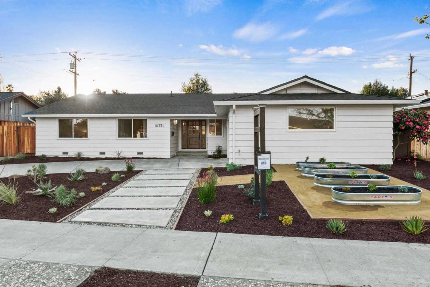 Newly Remodeled Masterpiece, Almost Like A New Home! The contemporary inspired design is striking with high-end finishes and matte black & gold hardware. This beautifully transformed ranch home is located in one of the best Cupertino neighborhoods. Natural light abounds with dual pane windows, wide plank, white oak hardwood flooring & bright white interior paint. Entertainers dream kitchen with new black & white shaker cabinets, gold hardware, quartz counters, large island with microwave drawer, subway tile backsplash & stainless steel appliances. Enjoy the spacious primary suite; complete with two closets & outdoor patio. Completely renovated bathrooms have the feel of a relaxing spa-like retreat with designer tile & quartz counters. Inside laundry. New Roof, New 200 Amp Panel, Copper Piping, New Furnace, Ducts & more! The front yard has drought resistant landscaping on a drip system. The planter beds make a perfect place for your own veggie garden. Great Cupertino Schools!