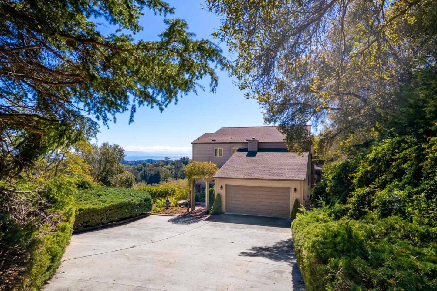 When I saw the views it was love at first sight, and every visit since, I realize how special and hard-to-find a property like this really is. Imagine sparkling views stretching to the ocean, birds and wildlife wherever you turn, a peaceful and private 3 acre setting minutes fr town, and that warm Soquel Hills weather that keeps you outside well after dark. A big, big deck lets you enjoy it all. Vaulted ceilings, skylights and walls of windows draw light, views and warm southern exposure into a generous living space, w/ample room for your piano and oversized couches, and bonus 16X18 solarium has it live even larger. Downstairs den could double as a BR. Upstairs primary suite enjoys big views w/another BR equally large and well-set up for extra furnishings. Other notables include 2-car garage w/loft storage, laundry rm, solar hot water, new paint, lighting and floor coverings to make it shine. Living proof of whats possible when you have the patience to wait for just the right place
