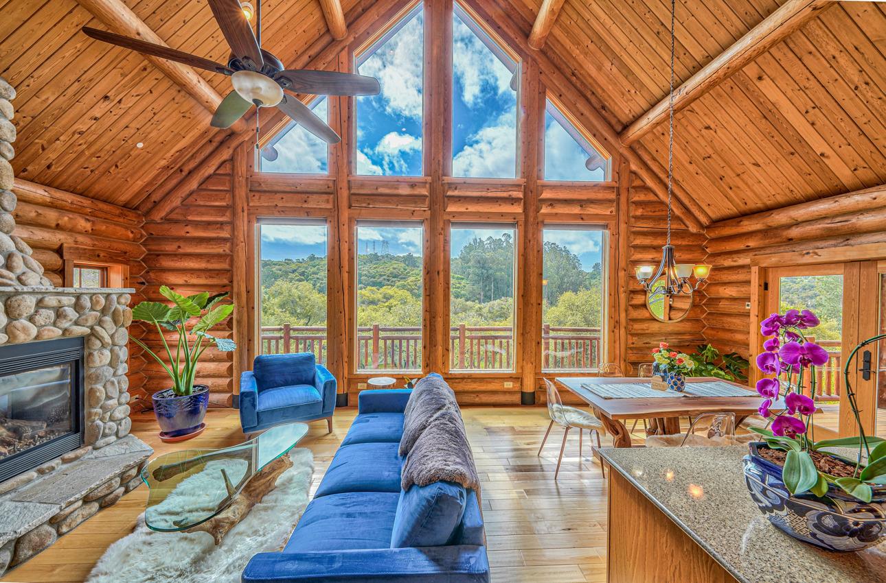 Tahoe Vibes Meets Coastal Living! Custom & Authentic log home built onsite with Lodgepole pine creates for a perfect balance of insulation rated (R-33) keeping the the home warm in winter and cool in summer. Take in the abundance of natural light and serene views of the hills and greenbelt through the oversized windows on the main level which also offers; Large deck ,Kitchen,family room,master bedroom & bath . Upstairs you will find 2 other bedrooms and a hall bath. Bottom level presents endless opportunities perhaps to accommodate an extended living situation with a Huge great room , large bedroom with french doors to outside, large full bath and 2 other huge bonus rooms (one with a closet ) both can be used as 5th /6th bedrooms /Gym and or office spaces !Looking for a place to park your recreational Vehicle? Carport was designed for an Rv ! Benefit from living behind the Gates of the secured neighborhood but without the hassle of a full blown HOA! Your Tahoe Coastal Home is waiting!