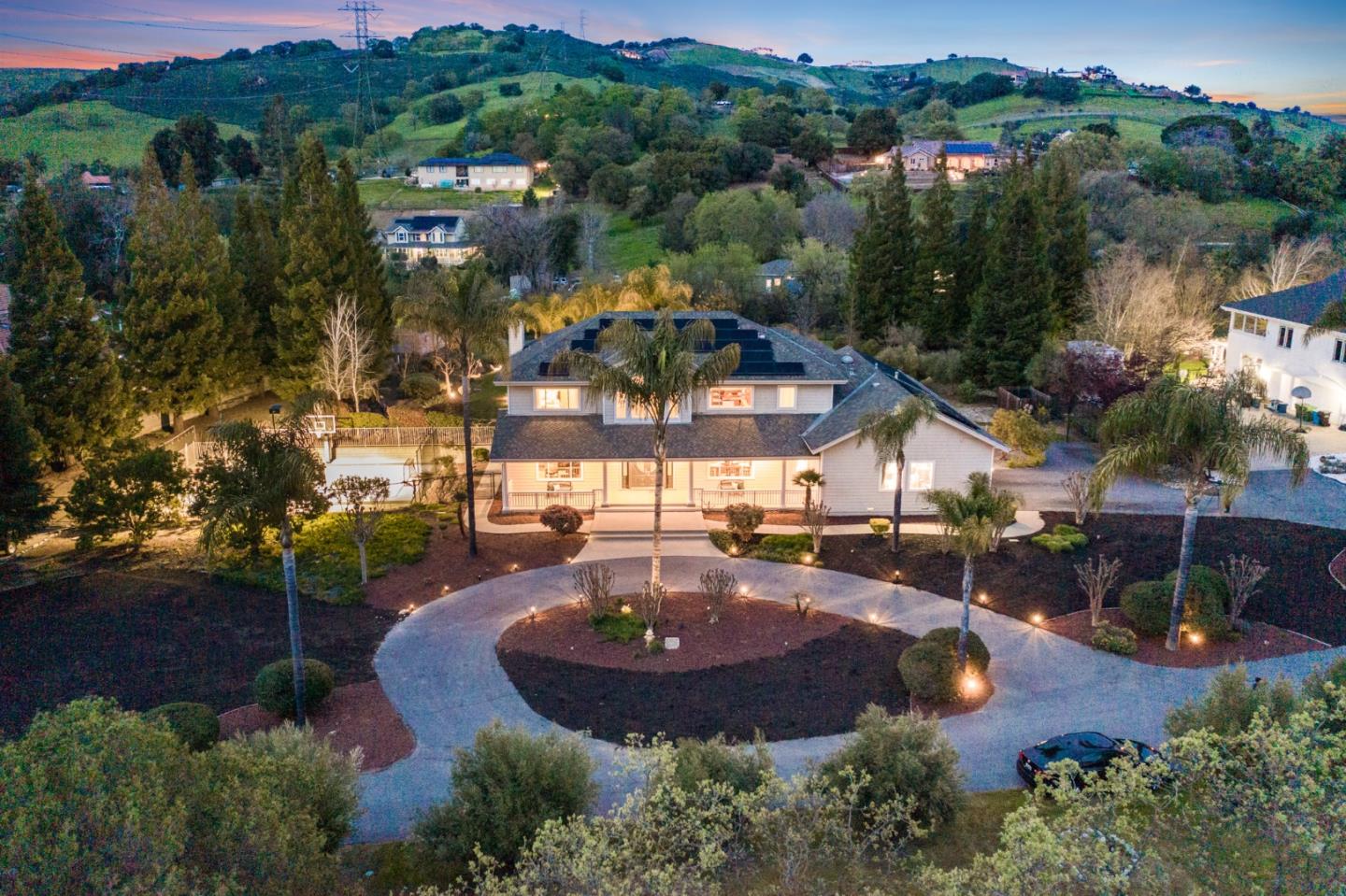 Elegance & tranquility, a custom-built luxurious country estate situated on 2.6 acres. Behind an automatic gate, a delightful enclave of 5 executive estates, enjoy a quiet court w/ privacy & tranquility. Captivating architecture, exquisite finishes & extraordinary grounds. Attached 1bd/1bath ADU! Beautifully landscaped, palm trees & flowering shrubs border motor court. Open to a grand foyer w/ volume ceilings, lg picture windows showcase generous living spaces. Living room & dining room have built-in wetbar/storage. Temperature-controlled wine closet. Kitchen & great room overlook rear grounds. Large center island, ample cabinetry & professional appliances. Large study & 3 spacious bedrooms, including the stunning primary suite w/ private balcony upstairs. Expansive rear grounds enjoy pool, spa, sports court! Water cascades over the rocks in the pond. Open space beyond is a great place for a wonderful fruit orchard or sports field. Oversized 3 car garage. Owned Solar panels for energy efficiency. A slice of countryside paradise w/ so much to offer! Great location w/ easy access to Almaden amenities, top-rated schools, shopping and dining.