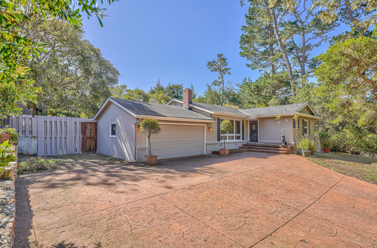 This gem of a home is located behind the gates of Pebble Beach and is just minutes to Spanish Bay! Enjoy all the beautiful areas of the Monterey Peninsula... Carmel, Pacific Grove, Big Sur, Pebble Beach, golf courses, restaurants, beaches and more! This 3 bedroom/2 bathroom home has recently been painted inside and out! The stamped concrete driveway leads to an attached 2 car garage and has a space for an oversized vehicle. The front yard has beautiful stone walls, garden area and mature trees with ocean views from the front on clear days. Enjoy all the natural light throughout from the large windows. The living room has wood floors and gas log fireplace and opens to the dining area. The kitchen has unique cabinets with built-in's & a garden window. The primary bedroom includes an over-size cedar closet with a private bathroom. French doors lead outside to a deck which overlooks the picturesque gardens filled with flowering plants, trees and paths with multiple levels to enjoy.