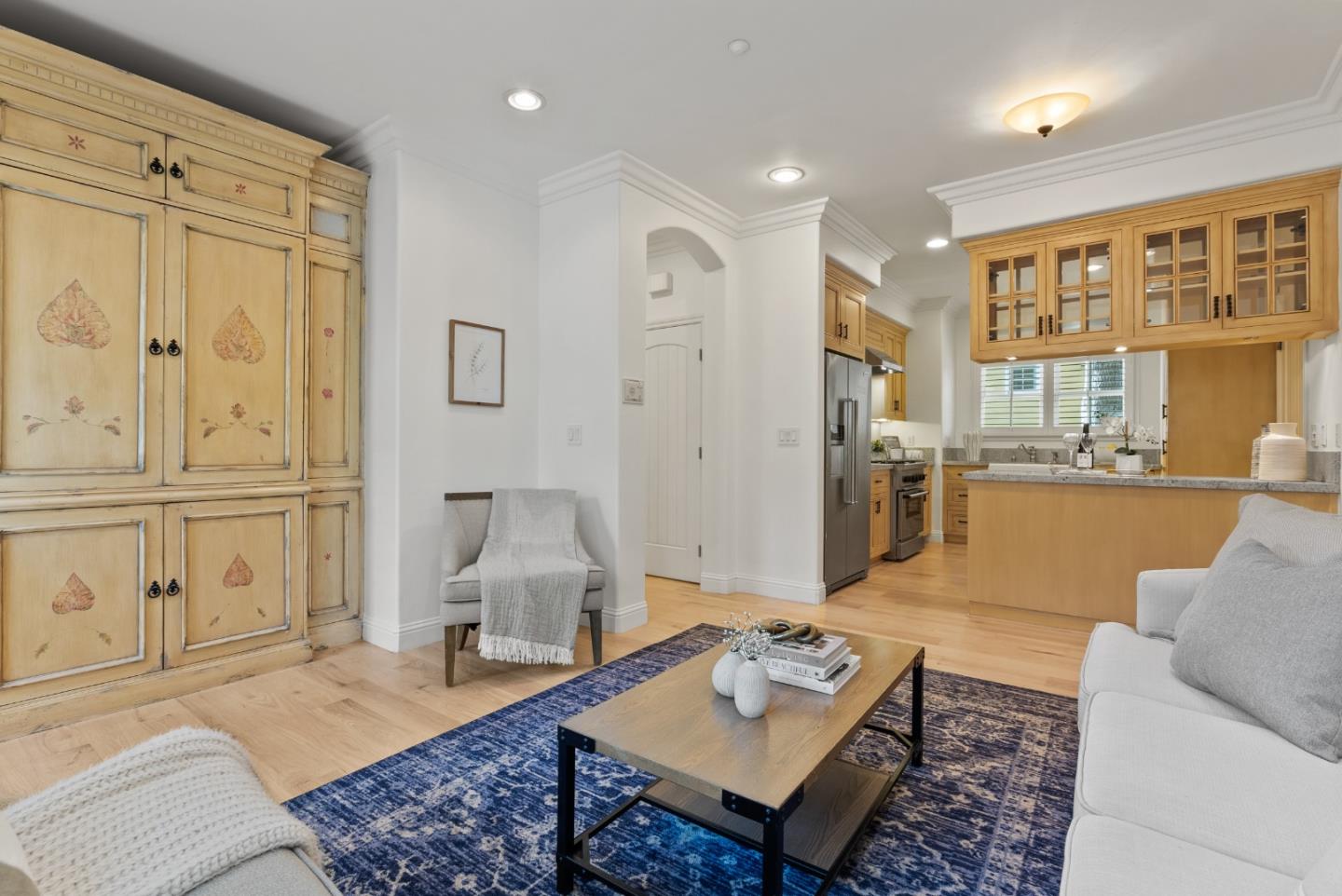 On a gorgeous, heritage treelined street in the heart of downtown Menlo Park, this French Cottage inspired home, includes 3 bed, 2.5 baths, and a private patio. A chefs kitchen with stainless steel top-of-the-line appliances, farmhouse-style sink, and granite countertops. The oak hardwood floors are freshly refinished. Upstairs laundry. Formal front room includes cozy fireplace and private dining room with abundance of natural light. Primary bedroom has Brazilian cherry floors, ensuite Carrara marble, luxe soaking tub, glass shower and a large walk-in closet. The flagstone private courtyard-like patio includes lush flowers, seasonal foliage, making gardening and indoor-outdoor entertaining a breeze. Close to Stanford campus and shopping center. This friendly neighborhood is a completely walkable location, 2 blocks from Santa Cruz Ave, high end restaurants, banks, Draegers and Trader Joes. As well as CalTrain, Library, highly rated schools, and renowned prep schools. New HVAC system.