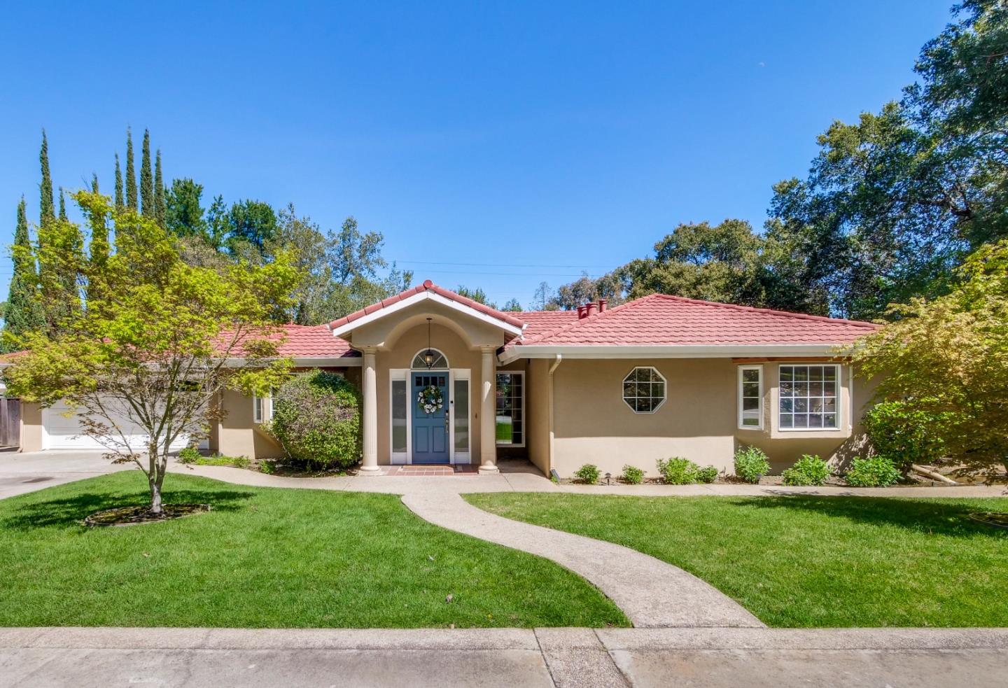 Open and spacious single story home with extensive upgrades throughout. Abundant natural light with architectural columns, tall vaulted ceilings, and skylights. Living area features an elevated gas fireplace sleekly surrounded from floor to ceiling in polished tile. Chef's kitchen has white cabinetry, granite slab counters, honed granite mosaic backsplash, island with counter seating plus casual dining area, and built-in desk center. Appliances include Thermador gas cooktop, KitchenAid oven, microwave, dishwasher, and refrigerator. Concealed laundry area in the kitchen with LG washer/dryer and sink; attached and oversized 2-car garage; central air conditioning. Spacious and private rear yard crushed stone areas, level lawn, raised vegetable beds, and a large storage shed. Top-rated Cupertino schools: Montclaire Elementary, Cupertino Middle, Homestead High (buyers to confirm).