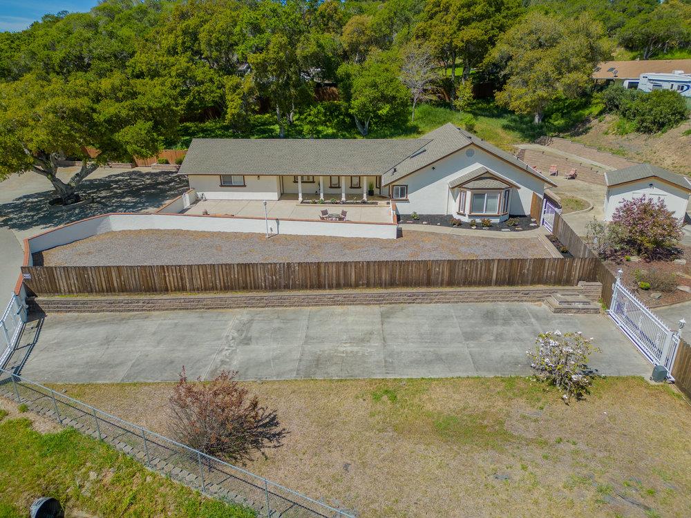 This single-story 3 bed 2 bath home sits on mostly flat 1.24 acres. The front door opens up to a spacious, open family room with vaulted ceilings. Plenty of natural light floods the house throughout, benefits from the skylights and expansive windows. Every inch of the property is manicured and purposefully thought through. Enjoy the front paved patio. Plenty of outdoor space to create your dream oasis. Don't miss the front, electronic gates that take you down the long driveway through the front and sides of the house. Featuring two large sheds to store your toys. This one will not last.