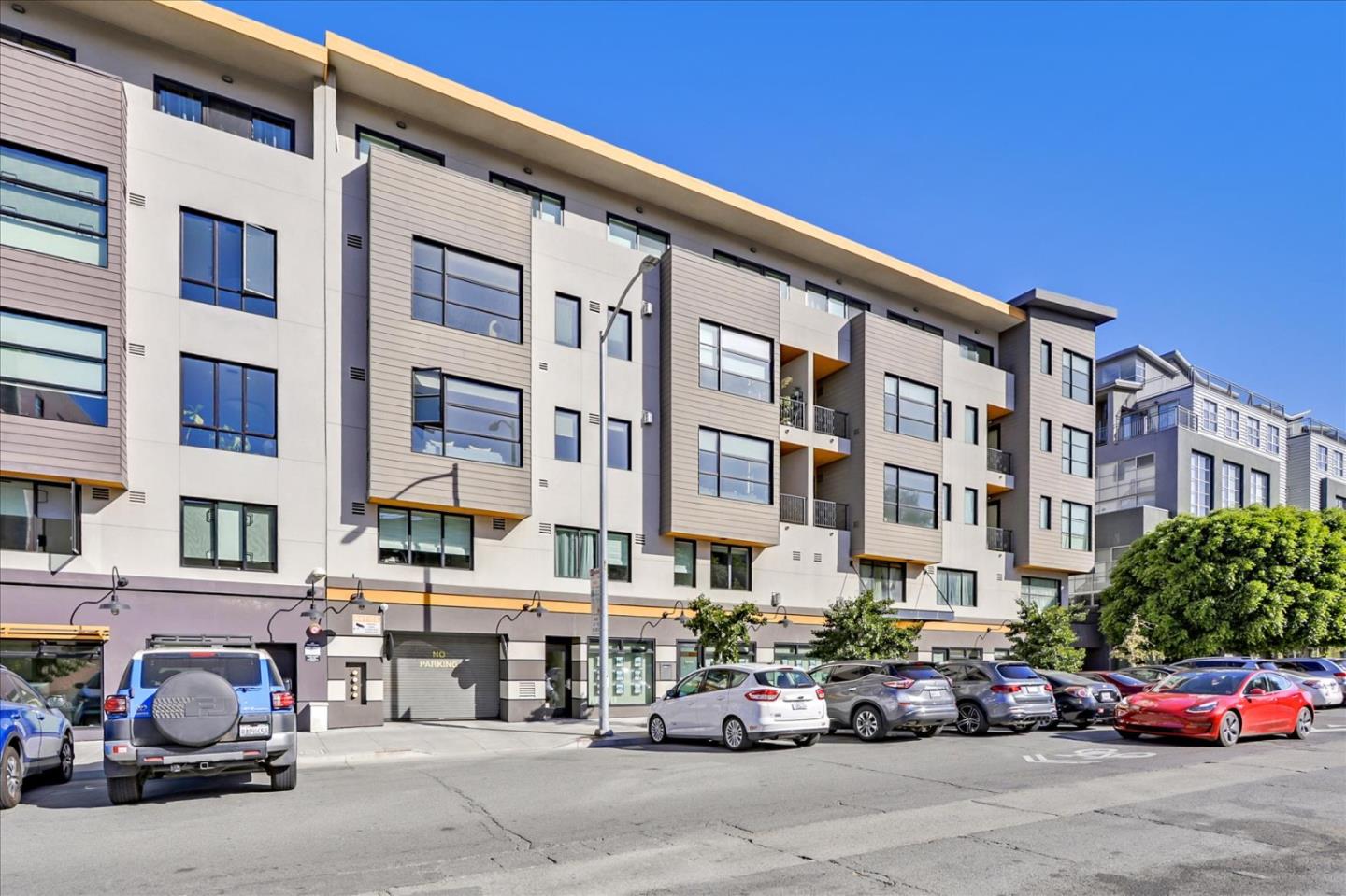 This home boasts high ceilings with gorgeous finishes, recessed lighting, and tons of natural light streaming through skylights and large windows with motorized shades! Open living and dining floor plan finished in hardwood, with an option to lounge al fresco with an adjacent balcony accessible from all the rooms. Gorgeous U-shaped kitchen with ready-to-use stainless appliances ready for every feast! The primary bedroom is not to be missed with its enormous walk-in Elfa closet and sleek ensuite: indulge yourself in a pamper session with separate showers and soaking tubs, gorgeous tile flooring, plus quartz and polished chrome-accented features! Few blocks away from Caltrain, 3rd St light rail, and convenient to the freeway. Tons of dining options, shopping, errands, bakeries, and coffee shops are just minutes away on foot! Comes with a concealable in-unit laundry and one secure parking spot. Additional parking spot for an additional fee. Message for more details!