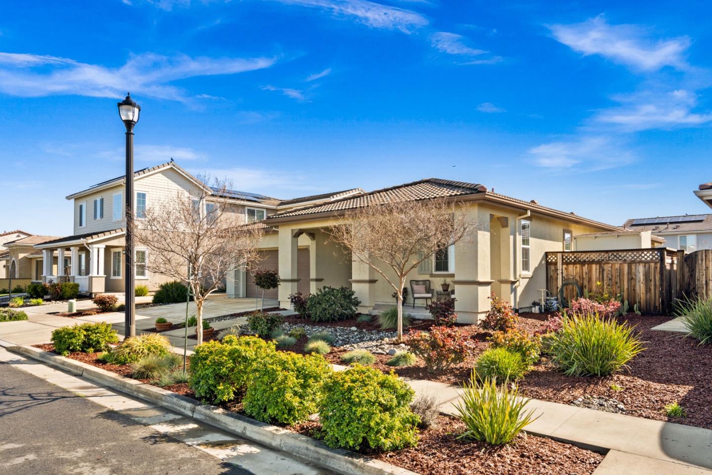 Beautifully kept with upgrades, this Spring Lake single story is not far from UC Davis, Sacramento, shopping and local schools. There is a, peaceful agriculture field across the street. No through traffic makes for a wonderful spot to enjoy the rural landscape. Constructed in 2017, this home is in mint condition with upgrades including Landscaping, Hardscape, owned Solar Panels, LED lights, Tank less water Heater beautiful built in cabinets and more. 9' ceilings run throughout the home. Kitchen has an over sized island, granite counter tops, open concept to the living room and dining area. A wonderful rock faced gas fireplace with thermostat is surrounded by beautiful built-ins, wall to ceiling shelves and cabinets. Enjoy the walk-in closets lots of cabinetry, and more. Garage has an epoxy floor and lots of storage. The front and backyards have been professionally landscaped. Low maintenance in front and custom Pavers, Lawn, Fig, Lemon, Mandarin trees & Garden beds in the back.