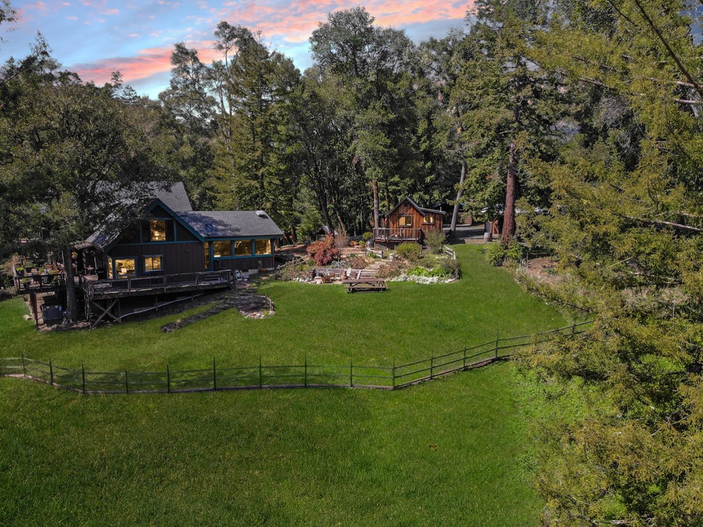 Welcome to your dream home in the mountains! This stunning property sits on almost 12 acres with a main house, a guest cottage and workshop. The main house features 3 large bedrooms, 2 full bathrooms and bonus room. Spacious decks feature mature wisteria, where you can enjoy the views and the fresh air. The kitchen is a chefs delight, with custom cabinets made from reclaimed wood, a Subzero fridge, a 58 Lacanche range, a copper hood, concrete and granite counters and a double island. The kitchen also boasts a wall of windows that overlook the mountains. The property is fully fenced and gated, with fruit trees, grapes, a dog run and a chicken coop. There is plenty of parking space, including a 2-car garage and a covered area. Other features include whole house generator, and Starlink Internet.This property is ideal for anyone who loves nature, privacy and modern amenities. It is only a 30-minute scenic drive to Hwy 280 Los Altos/Palo Alto/Menlo Park area.
