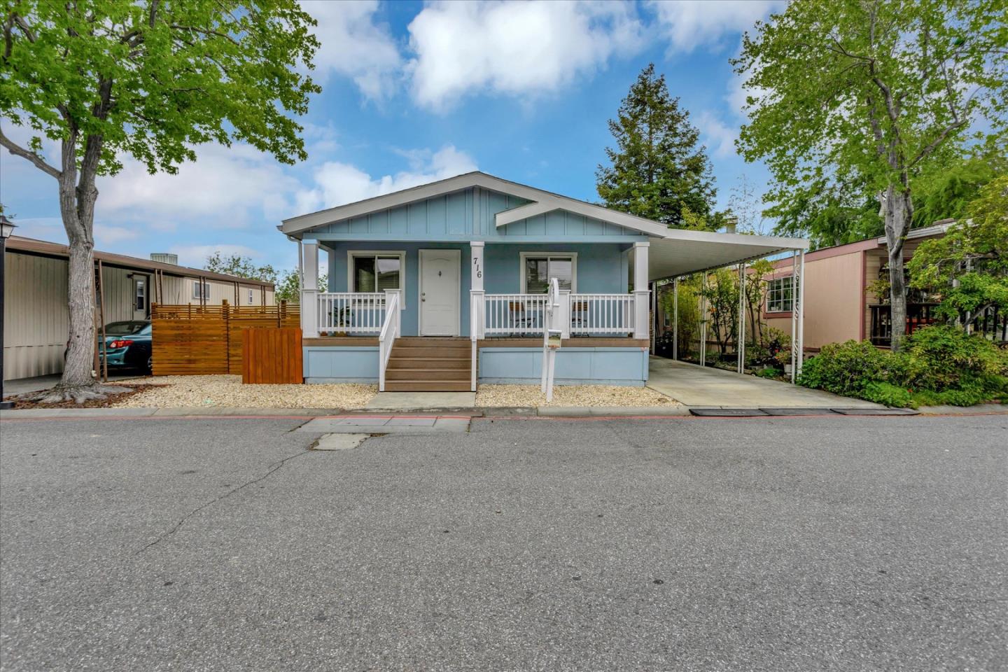 Cute three-bedroom two-bathroom home located on a Premium Lot with a HUGE fenced in yard! Stylish Contemporary Vertical Wood Fencing around the lot creates a perfect space for privacy, gatherings, pets, and children. 3 sheds on the property are included for all of your extra storage needs. Charming front porch adds to the quaint exterior aesthetic. Great location within the community, easy to get to, and close to visitor parking. In the heart of Silicon Valley, nearby major shopping, freeway access, and restaurants. Low monthly space rent of $1,269.00 under rent controlled.