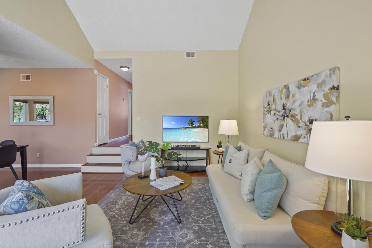 Beautifully updated 3 bedroom condo with vaulted ceilings. This home is the best valued 3 bedroom available on the market and is completely move in ready! Located in the rear of the community, this top level condo features new laminate flooring, updated kitchen with newer appliances and granite countertops. Sunny breakfast nook featuring a large bay window, vaulted ceilings and open to the spacious living room. Energy saving features include attic insulation for year round added comfort, double pane windows, and more. This fabulous home has a two car tandem garage with smart opener, and is conveniently located 10 mins from Downtown San Jose, minutes to 87 and the Plant Shopping Center. The community offers beautiful green belts between buildings, walkways, playgrounds, and a pool. This is the most popular floor plan in the community and they do not come up often!