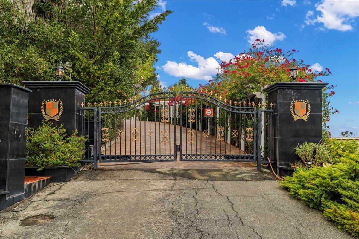 One-of-a-kind gated hilltop villa with spectacular Silicon Valley and east bay view. Close to 9,000 SF expansive space sitting on approx. 2.6 mostly flat acres. Five large suites with 2 luxurious primary suites on the main level, and 2 separate offices. Gourmet kitchen, bar, and large multi-function room. Outdoor space features, multiple seating areas, large motor court, pool, spa, gazebo, and fruit tree garden. Close by the Saratoga Country Club. Excellent Schools.