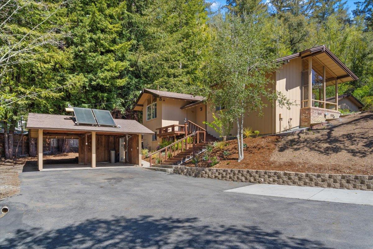 Welcome to 23600 Skyview Terrace! A mid century modern designed by Bill May - Located in the highly desirable Villa Del Monte Community. Beautiful home in the mountains with a quick commute to downtown Los Gatos. For sale by the original owners! Vaulted ceilings with exposed beams. Floor to ceiling windows in many parts of the home to bring in the natural light and views of the surrounding scenery. The home has many recent updates which include brand new bathrooms, updated kitchen with new quartz countertops & stainless steel appliances. 6 burner gas cooktop, built-in microwave, oven, wine fridge & large pantry. Beautifully refinished floors throughout the home. Freshly painted. Convenient indoor laundry room with lots of storage. Central forced heating & AC. Spacious refinished deck wonderful for entertaining, lounging and al fresco dining. Light filled sunroom located off the Primary Bath. Detached carport, large basement & large greenhouse. Don't miss out on this wonderful home!