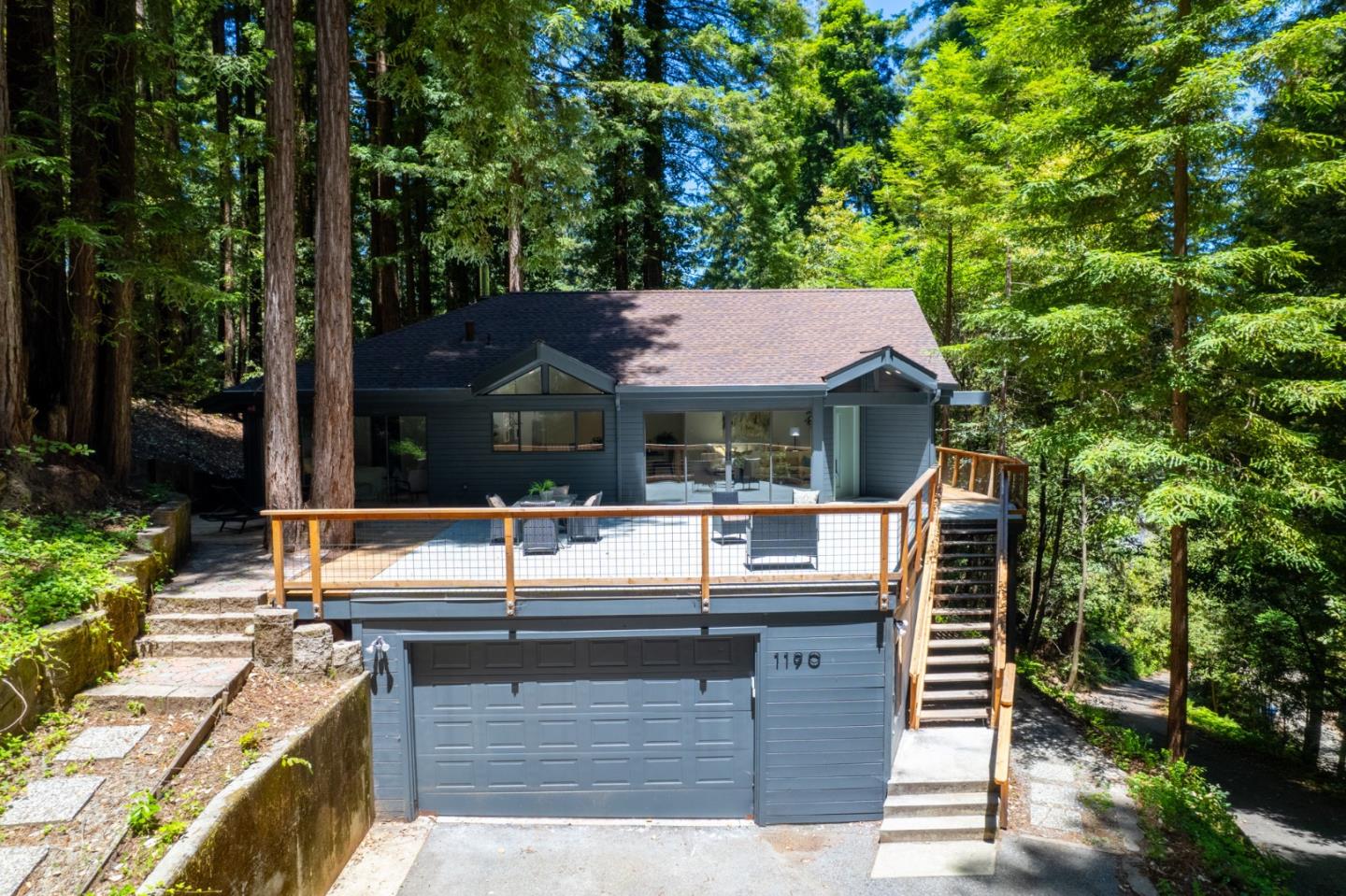 New Price! Modern Mountain Masterpiece in Fabulous Forest Lakes! This newly renovated 3bedroom-3bath home will WOW you. Spacious open concept living with soaring ceilings, skylights and a multitude of windows showcases the surrounding majestic Redwoods. 2 sliding-glass doors open onto an enormous deck- ideal for festive gatherings or quiet meditation.The flowing functional floor plan simplifies daily living & is an entertainers dream!The remodeled kitchen has a huge quartz island with xtra storage, generous quartz counters & new appliances.The primary ensuite has a spa style bathroom with large shower & bench. Downstairs has its own entrance & features a family room, cozy wood stove, 2 bedrooms, 1 bathroom, laundry room & xtra storage-multi generational potential! New roof, paint, flooring & water heater! Seasonal lake & community events! Close to mountain biking & hiking, schools shopping/restaurants,farmers market,Music Hall, bakery&winery.Easy drive to Santa Cruz Beaches & Los Gatos/Bay Area.