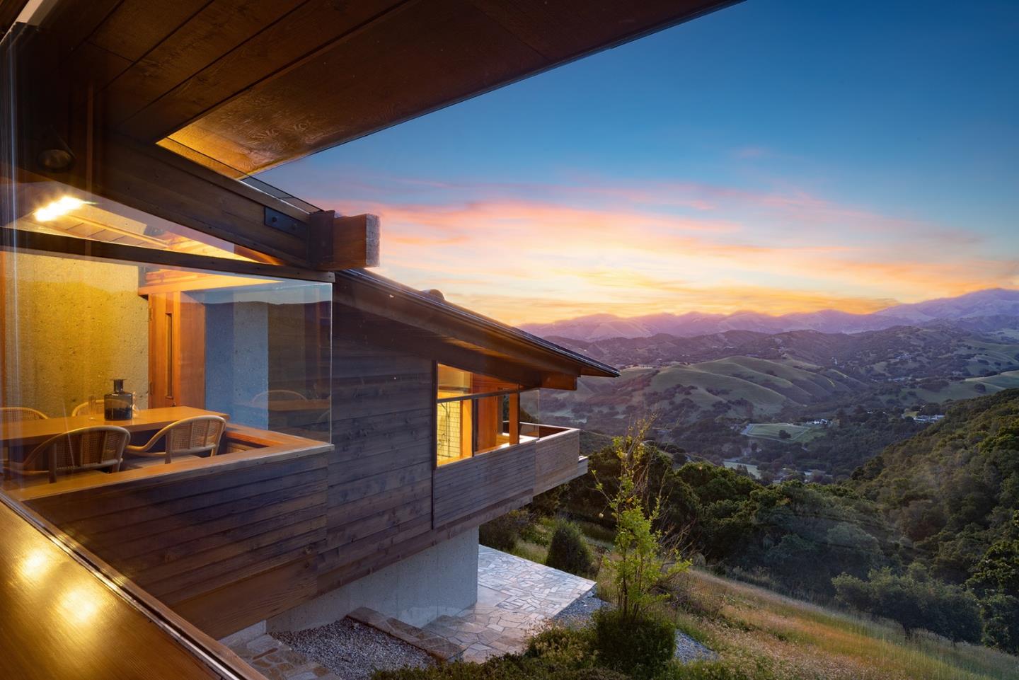 Tucked into the hills overlooking the Pastures of Heaven in Carmel Valley is this jaw-dropping Will Bruder-designed mid-century modern masterpiece. The 3-bedroom, ~3,000 square foot home's orientation is sited perfectly for watching sunrises from almost every room. The property is a work of art, with raw materials and meticulous attention to detail throughout like mosaic tile accents, copper fireplaces, 8" thick reinforced concrete, rough-sawn cedar walls, ceilings, and exposed beams, glass borders, and Douglas fir and white oak accents. The land itself is special, with 14 acres of rolling hillsides providing privacy and water available for further developing a pool or ADU. Highlights include a 3-car garage, Tesla 220 charger, chef's kitchen, wine cellar, an enclosed multi-use area, and a luxurious primary suite with fireplace and balcony. This is an exceptionally rare opportunity to experience elevated living in a striking home just a short drive from Carmel Valley Village.