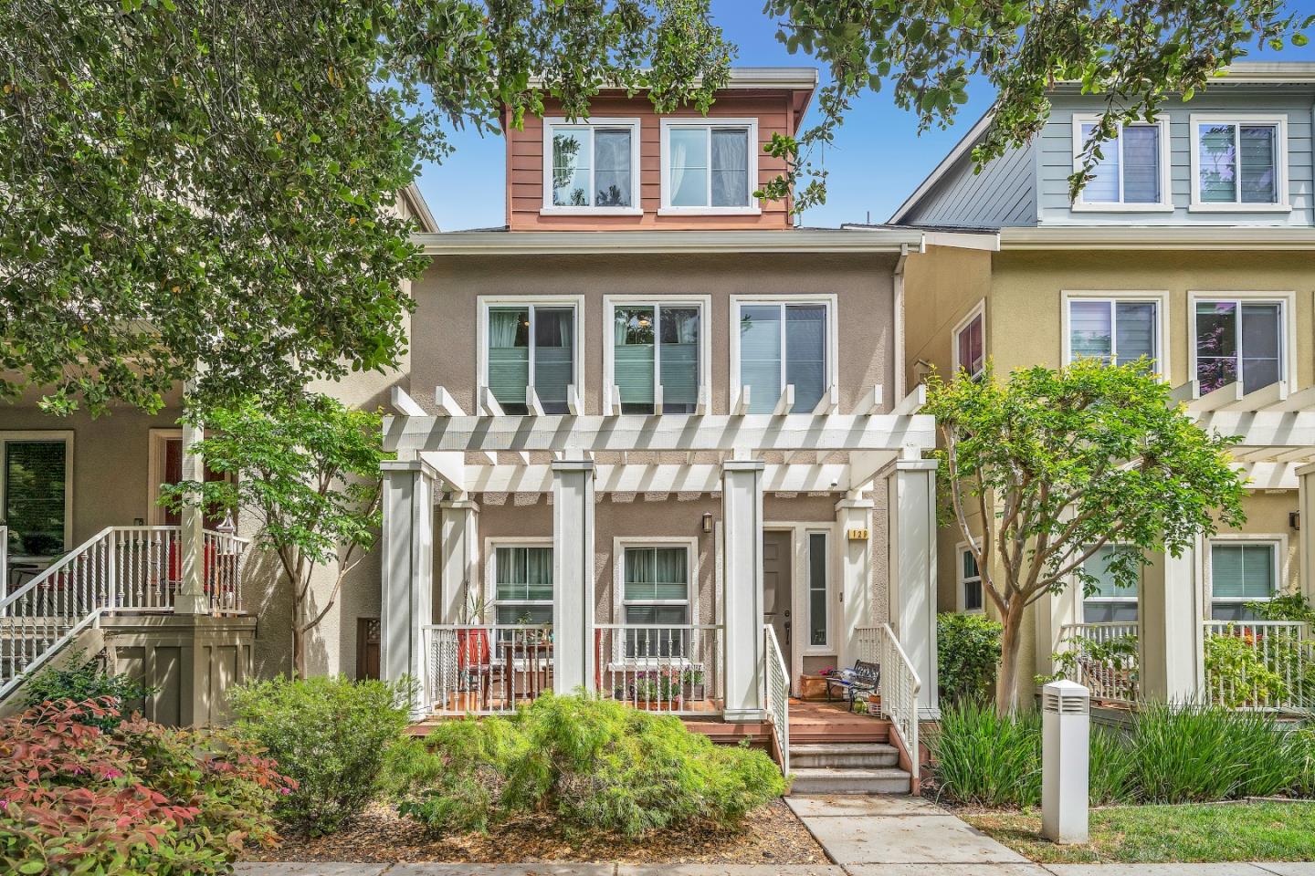 Stunning single-family home in the heart of Mountain View. Amazing location less than 1 mile away from downtown Mountain View and Caltrain/VTA light rail stations. Open floor concept boasting high ceilings and pristine Brazilian hardwood floors. Kitchen has upgraded stainless steel appliances, gas stove, custom cabinets and large granite island with breakfast bar. All three bedrooms have attached bathrooms. Attached 2 car garage with Tesla charger and owned solar. Laundry area with high end washer and dryer. Ideal location within the community, facing lawn and large oak tree. Easy access to highways 85, 237, 101, El Camino Real and more. Award winning Mountain View schools.