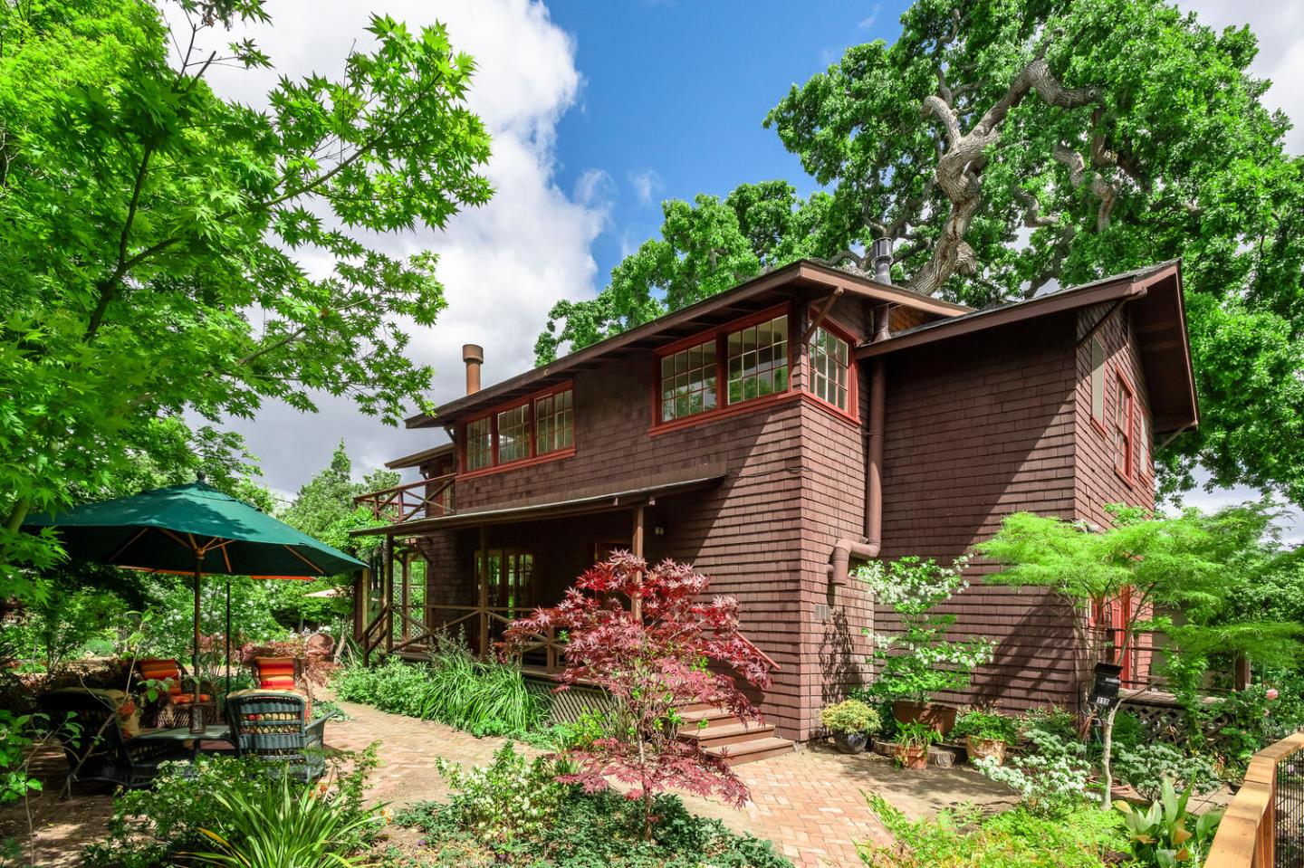Welcome to Garden Living on Grand! This property is a unique and time-honored treasure. Charming shingled home with award-winning landscaped breathtaking grounds, mature maple & giant redwood trees. Situated on a tree-lined street in the coveted Mt. Carme! Large 1/2-moon multi-car driveway. Grand front porch w/glass door w/formal entrances w/the possibility of dividing the original home into multiple family living quarters. 4 bedrooms, 2.5 baths, 2 living rooms, 2 kitchens, laundry rm, 3 outdoor decks & a detached studio. Floor-to-ceiling windows, French doors & glass entry doors flood the home with natural light! The living-dining area features walls of windows, an arched doorway, exposed beams, diamond-pattern hardwood floors & fireplace. MAIN LEVEL: primary suite w/access to a private veranda, featuring a spacious closet & a full bath. Laundry rm, and a half bath. UPSTAIRS: 3 bdrms/1 full bath. Close to the Train, Stafford Park, schools, downtown & shops/restaurants. Near 101& 84.