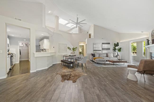 Welcome to 187 San Pedro Circle located in the sought-after Vendome neighborhood! This stunning 2 bed plus loft, 2 bath single-family home boasts a spacious open floor plan wrapped in windows, beautiful high ceilings, wood & carpet flooring, and a gas-lit wood-burning fireplace. The modern kitchen, features quartz countertops, stainless steel appliances, and island. The primary bedroom includes a spa-like ensuite bathroom, while an additional bedroom offers flexibility for a growing family or home office. Enjoy a dramatic loft, skylights, and an attached storage closet easily convertible to a third bedroom. Step outside to the landscaped backyard with spacious deck perfect for summer barbecues or morning coffee. Conveniently located minutes from downtown, commuting is a breeze with easy access to major highways and public transportation. The active HOA offers a pool, mature landscape, and green lawns and trees. Don't miss this opportunity to make this dream home yours!