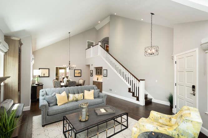 Experience a timeless and sophisticated ambiance throughout this exquisitely remodeled home bathed in natural light. Soaring ceiling living and dining areas offer flexibility and versatility. Unique living room floor-to-ceiling bookcases. A meticulously rebuilt kitchen maximizes functionality and adds visual appeal. Commanding island with built-in microwave and intimate seating for two. Adjacent to the kitchen is an open library, featuring regal wall-to-wall, floor-to-ceiling shelving. The first-level primary bedroom is a handsomely appointed retreat. The ensuite bathroom showcases floor-to-ceiling stone, strategically placed windows, and dual sinks. A commanding staircase leads to two additional bedrooms; each offering a peaceful and inviting atmosphere and an elegantly updated shared bathroom. A dedicated office space awaits; inspiring brilliance and productivity.