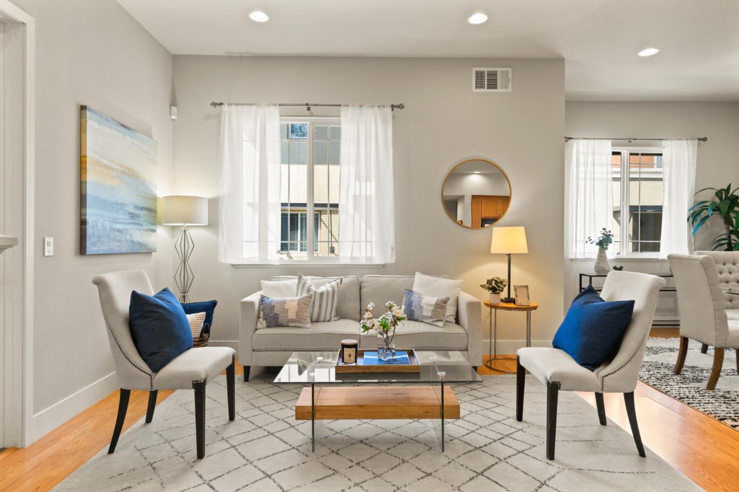 Welcome to 1113 Trinity Lane, Palo Alto. This 3 bed 3 bath townhouse has all the benefits that living in Palo Alto has to offer! As you enter you are welcomed by an expansive open kitchen and formal dining area that flows into a cozy family room. On the same level you'll find a spacious bedroom, full bath and laundry area. High ceilings cascading up the staircase and hallway lead you to the primary room and 3rd bedroom. Primary room boasts a spa-like ensuite with generous walk-in closet. On the opposite side of the hallway sits the 3rd bedroom, also ensuite. This townhouse has access to award winning schools: Gunn High School, JLS Middle School and Palo Verde Elementary. Easy access to biking and hiking trails at Bayshore Nature Preserve, tech companies, the JCC, library, park, shopping, and restaurants giving you a complete package of the Palo Alto lifestyle. HOA recently replaced the lower level roof in the entire complex, grounds and exterior of the complex impeccably maintained.