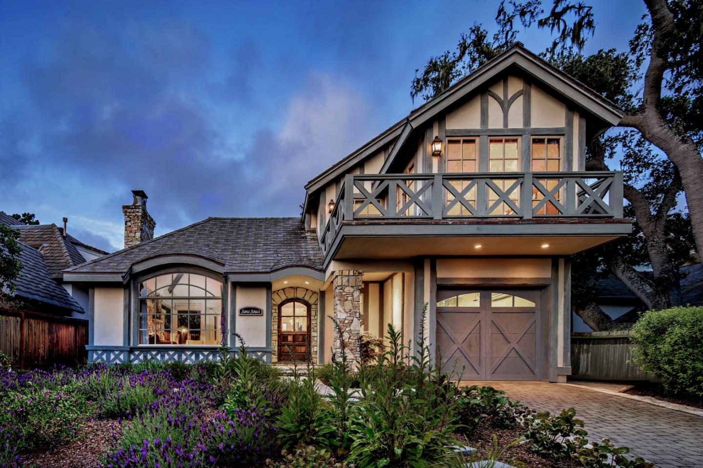 Enjoy the carefree lifestyle Carmel-by-the-Sea offers in this handsome French Tudor aptly named Sans Souci. Ideally located just a couple of blocks from the famous white sand beaches of Carmel and near downtown shopping, restaurants and galleries, this cottage offers some privacy from the tourist crowd while still being close to all the action. Although it looks like a quaint cottage with its arched dormers, half-timbered exterior, Carmel stone accents, and slate roof, it has just over 2000 SF of living space, 3 beds and 2.5 baths, including a beautiful 500+ SF primary suite with a balcony. Once inside, you will find hard wood floors, high ceilings and an open floor plan with a beautiful Carmel stone fireplace. There are westward views of Carmel Bay, and the ocean through the story book windows making for great sunset views nightly. As expected, the landscaping is beautiful with a large Carmel stone patio being a focal point. This is your opportunity to live in Carmel sans souci.