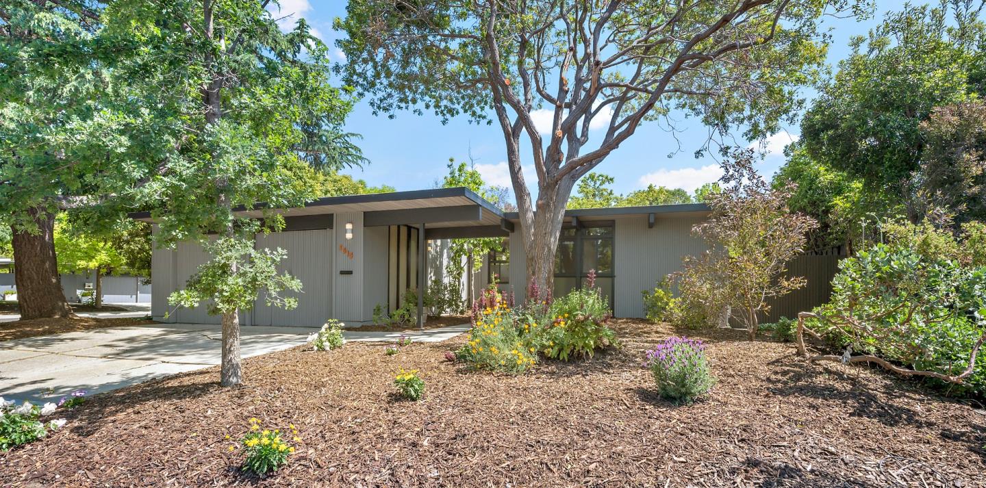 Open Saturday, May 20 and Sunday, May 21 from 1:30 to 4:30 pm. A popular Eichler style home with four bedrooms, two bathrooms, family room and two-car attached garage, on a large 8642 square foot lot. Walls of windows look outside to back and side yards to bring the "outside" "in". Open beam ceilings and a spacious floor plan allow for an abundance of natural light. The large yards include beautiful paving stone patios where you can enjoy the outdoors as well as entertaining. The home is located on a quiet, neighbor-friendly street. It is close to parks, the YMCA, schools, Community Center, and easy commute to tech companies. Located in Palo Alto with top rated schools.