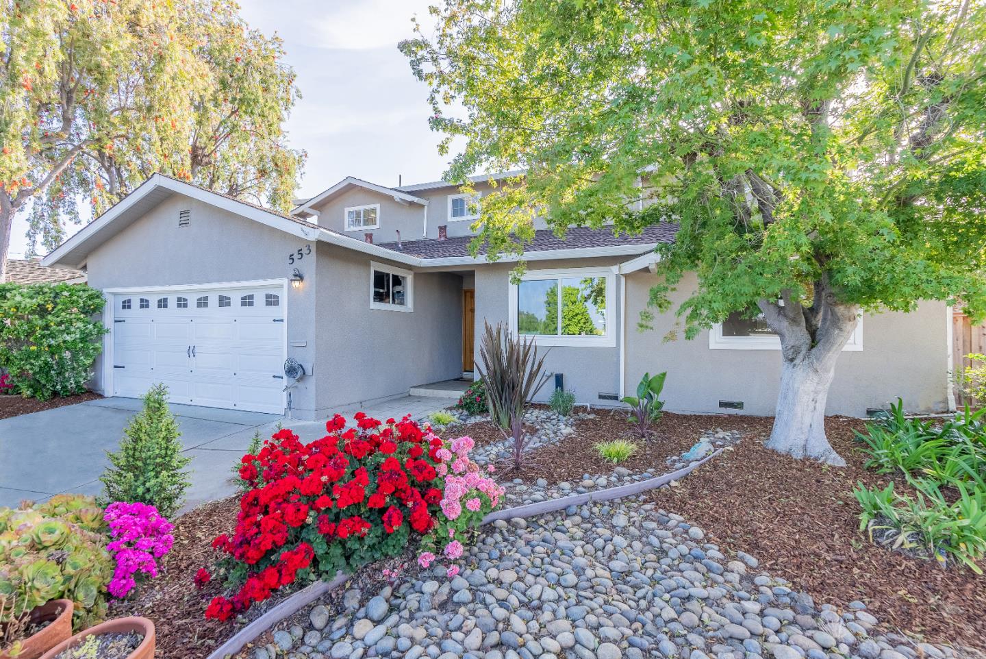 Exquisite 2 story stunner at the end of quiet cul-de-sac, within walking distance of Top Rated schools and 8 mins from the excitement of downtown Sunnyvale. Ft. wood flooring, recessed lighting, dual pane windows, multiple skylights, wood burning fireplace and French doors leading you into a sunny kitchen/family room combo. Gourmet kitchen ft. high-end stainless steel appliances, granite countertops/island, bay window and maple soft close cabinetry w/ under cabinet lighting. All bedrooms are bright and spacious w/ their own closets. Primary bedroom ft. a huge spa-like en-suite bathroom w/ stall shower, oversized tub w/ window above and a massive walk-in closet w/ custom organizer. To top it all off, 2 car garage w/ washer/dryer and enormous plant-filled backyard w/ wood deck and pergola. Near major tech companies such as Apple, shopping centers and the famous Serra Park. Easy Access to highway 85, 280 and Caltrain. Do not miss the chance to own this rare marvel. IT WILL GO FAST!