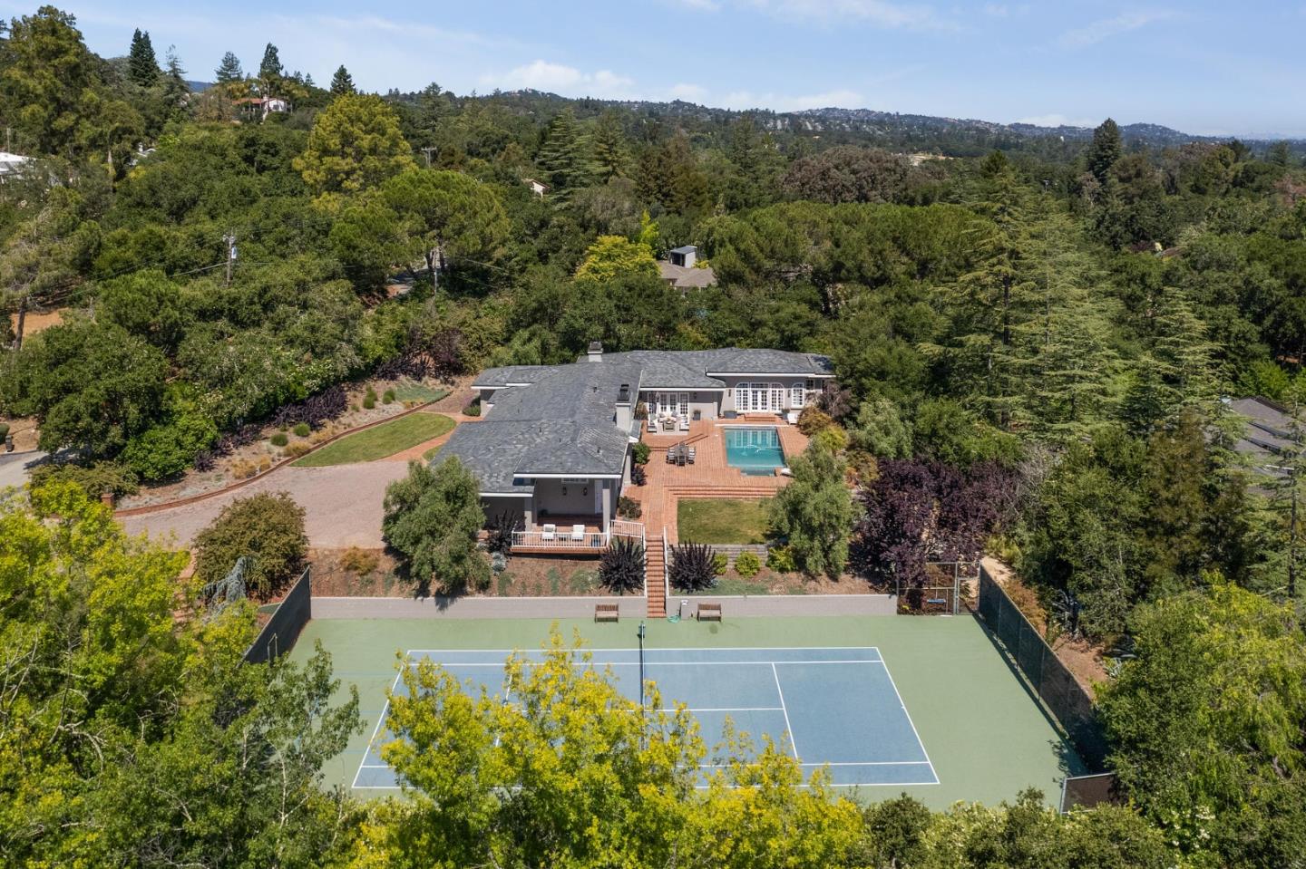 Welcome to this completely remodeled & expanded 1-story Traditional style home in desirable Woodside Heights. Enjoy the space & ambiance of Woodside while being in the coveted Las Lomitas School District. This sophisticated home offers a perfect blend of single floor living & comfort while highlighting California's desirable indoor-outdoor living. Home features a 4 bedroom, 4.5 bathrooms with a dedicated office off the primary suite. There is a formal living room, dining room, family room, eat-in kitchen, & laundry room. Grounds feature a heated pool & spa, tennis court, outdoor fire pit, & landscaped gardens. Just some of the special features of the house include 11-foot high tray ceilings in the public rooms, beautiful hardwood floors, & full height windows. Outside, there are copper gutters & downspouts, slate roof, fully landscaped yard. Minutes from hiking & biking trails & the Town of Woodside, Menlo Park & Stanford, with easy access to Highway 280, this home is a must see!