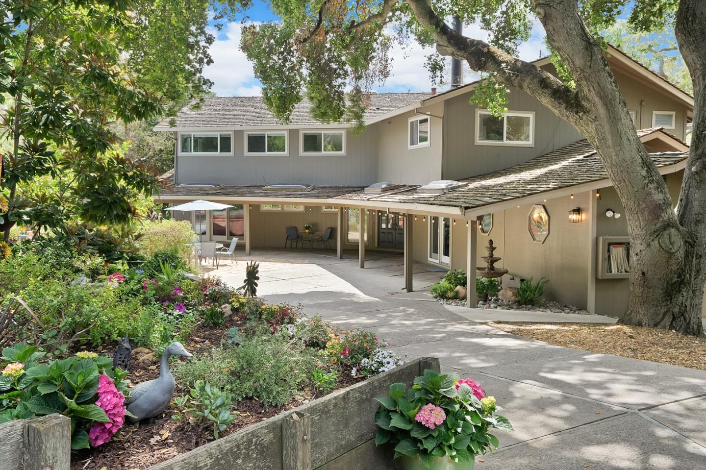Fabulous estate on 2.89 acres with tennis court, pool and pool house, and 3-stall barn. Situated on one of the best parcels in Graystone on flat to gently rolling terrain, this country-style 4204sf home has the primary bedroom suite on the ground floor, plus an office off the entry hall, and four bedrooms upstairs. The hexagon shaped Great Room with cathedral ceiling takes center stage with its floor-to-ceiling windows and wrap-around covered deck with a gorgeous view of the western mountain range and the mesmerizing evening sunsets. Charming eat-in farmhouse-style kitchen is delightful, in addition to the separate dining room for more formal affairs. The parcel has three distinct areas made up of the upper meadow/pasture with barn, the middle section with the main house, pool, patio and pool house, and the lower section with tennis court and lower meadow. Premier Almaden location, top-rated schools, and a myriad of possibilities for future improvements on this exceptional acreage.