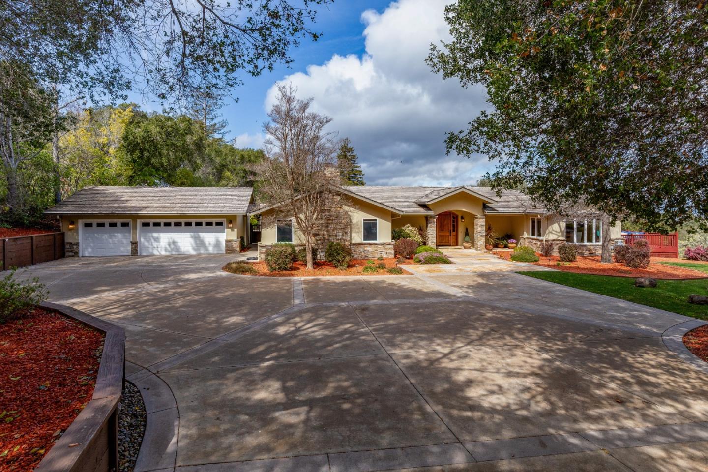 Feast your eyes on this stunning 4600 square foot beauty. 5 bedrooms and 4.5 bathrooms. Perfect one story floor plan with a huge Downstairs 5th bedroom that was used as a Gym. Sauna, Steam shower and 900 bottle temperature controlled wine-cellar downstairs. Amazing 15' x 20' Primary bedroom with walk-in closet, built-in cabinets with beverage fridge and travertine counter tops. Hardwood floors throughout the living areas. New carpets in the bedrooms. Kitchen has it all... stainless steel appliances, double oven, 6 burner Thermador gas cook top, 2 dishwashers, 46" built in refrigerator, cabinets with seeded glass/lighting, Granite counters and huge 8' island. 14' x 21' dining room, 16' x 22' Living room, sweet 18' x 20' Family room with vaulted ceilings right next to the kitchen... Large laundry room with sink and an abundance of cabinets. All this on an acre, pool, 3car garage with new Epoxy coating and an attached 18' x 12' work shop. Saratoga Schools...