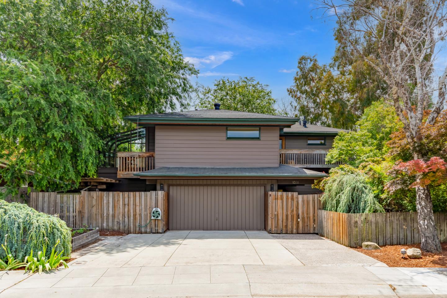 An incredible opportunity to move-in and enjoy, remodel, or customize a spacious Eichler home and ADU in the heart of the Metro Circle Midtown neighborhood. The main house includes three main-level bedrooms and two full baths, a spacious living room with garden access, open-concept kitchen, dining room solarium, and upper-level primary suite with two private balconies and an adjacent home office. Accessible via its own gated entrance, the ADU features a large light-filled living area, kitchenette, full bath and in-unit laundry. Wrapping around the home, perfectly shaded patios are surrounded by fresh landscaping, mature trees, sitting areas, and a water feature. Located just moments from 22-acre Greer Park, all of the amenities at Midtown Shopping Center, acclaimed Palo Alto schools, and fabulous restaurants. Limitless potential to make it your own, with separate guest accommodations or possible rental unit!