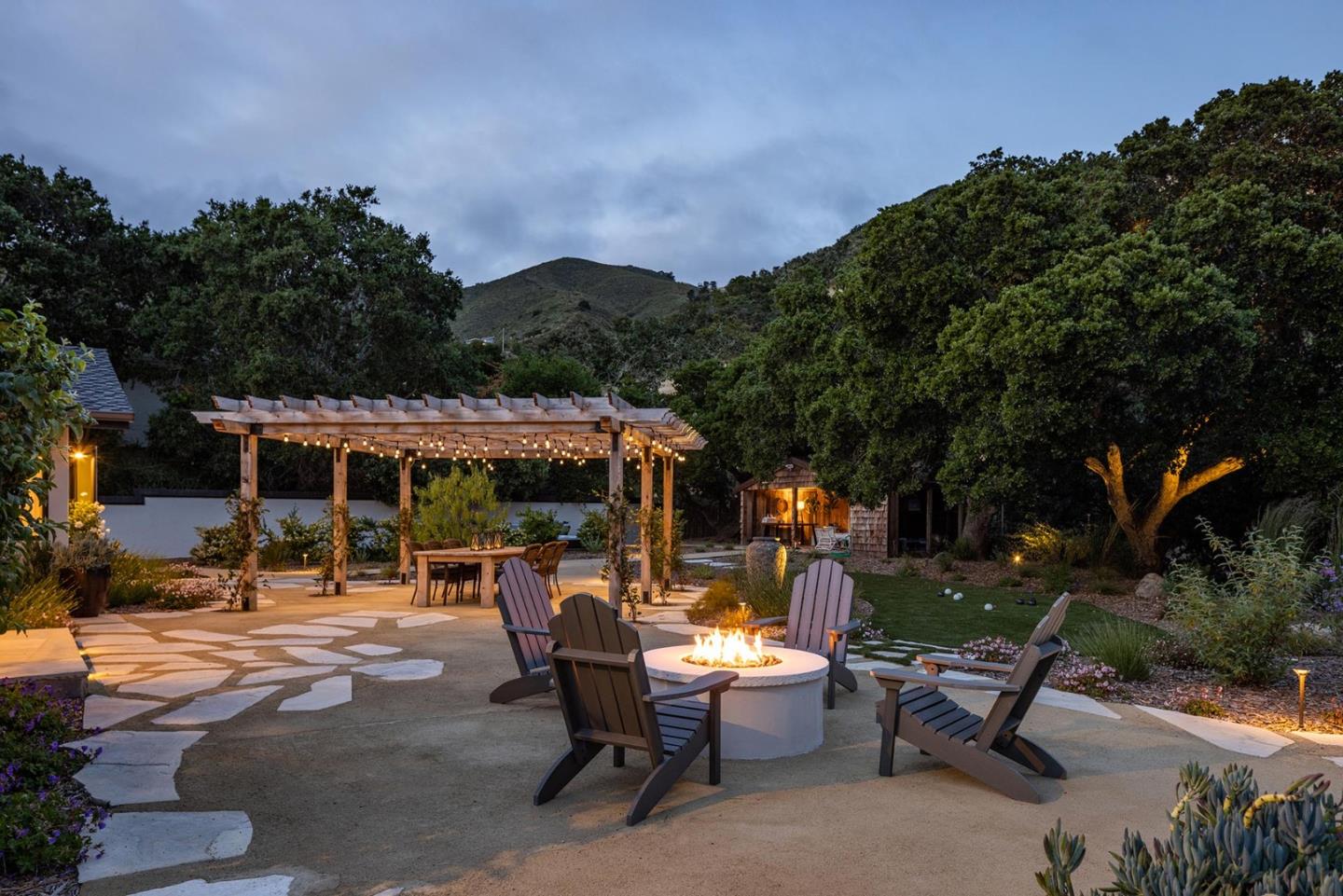 A stunning oasis on over an acre in majestic Carmel Valley. This home recently underwent a $1M+ renovation, bringing the home to its full potential. This truly California Casual home allows one to enjoy the beauty of indoor/outdoor living while reveling in the luxuries throughout. The 3,200+ sq ft main house consists of 3 beds, 3 baths and 320 sq ft private wine cellar, along with 8 skylights, 2 bay windows, and 3 French doors allowing natural light to envelop the space. Top of the line features include a stunning chefs kitchen with high-end appliances such as a Bertalozzi gas stove, Liebherr refrigerator and Miele dishwasher. Custom Walnut cabinetry in the kitchen, living area, and primary bedroom wow along with stunning Alder cabinetry in the oversized walk-in closet. Outside, meander through the gardens to your cabana, or beyond the built-in gas fire pit to a 450+ sq ft office with its own full bath. This home is truly magical. Move right in and relax in the Carmel Valley sun.